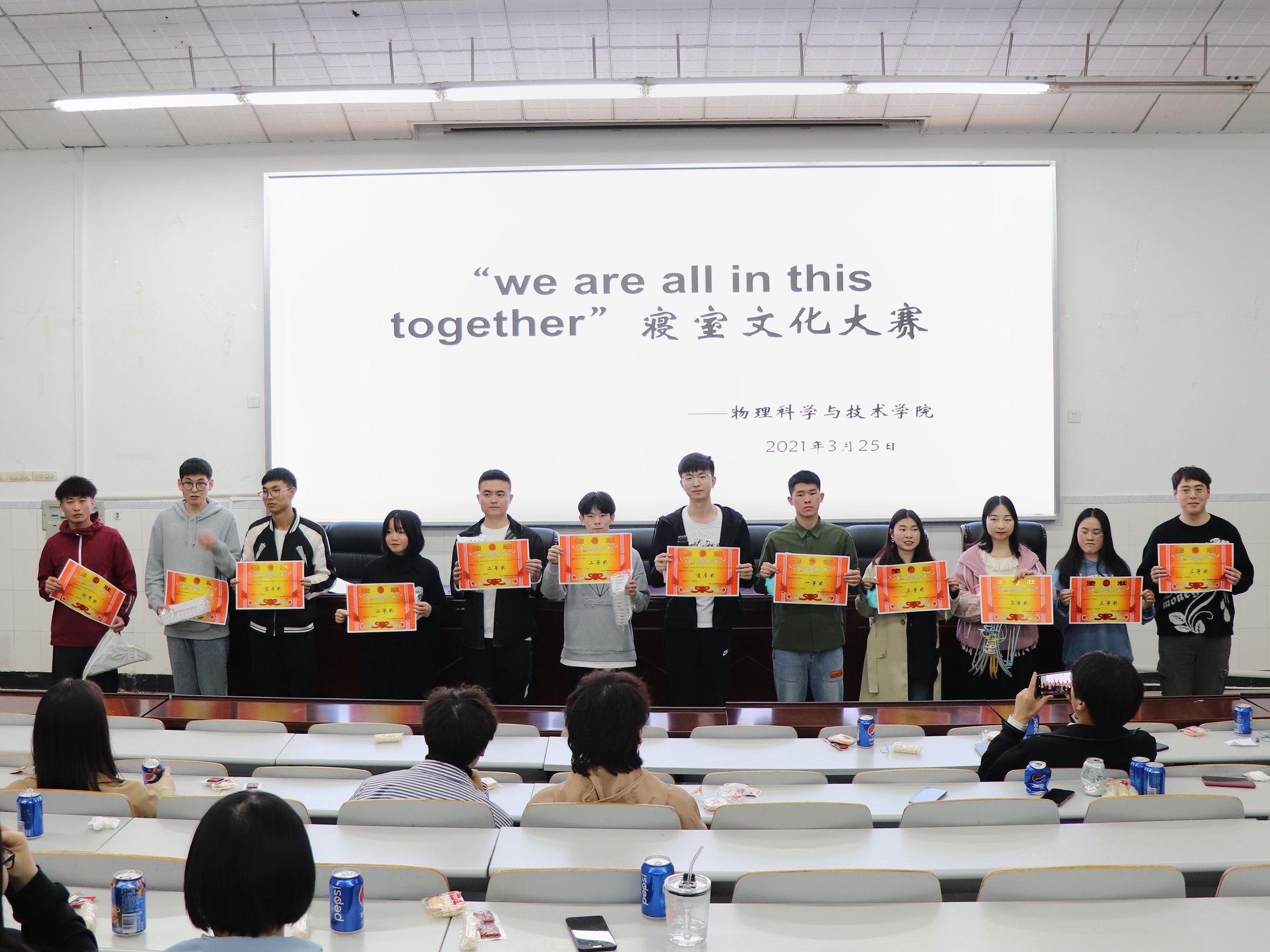 从暮春里醒来便是初晴,朝阳透过了花叶的轻盈。寝室是研究生的第二个家,为促进大家庭的和谐共进,加强研究生寝室管理、增进寝室成员间的情感以及增强集体荣誉感和归属感,共同创设舒适整洁的寝室环境及团结互助、利于科研的学习氛围。betway西汉姆联物理科学与技术学院于2021年3月25日晚上7点至9点在物理科学与技术学院大阶梯教室举办了以“We are all in this together”为主题的寝室文化活动。