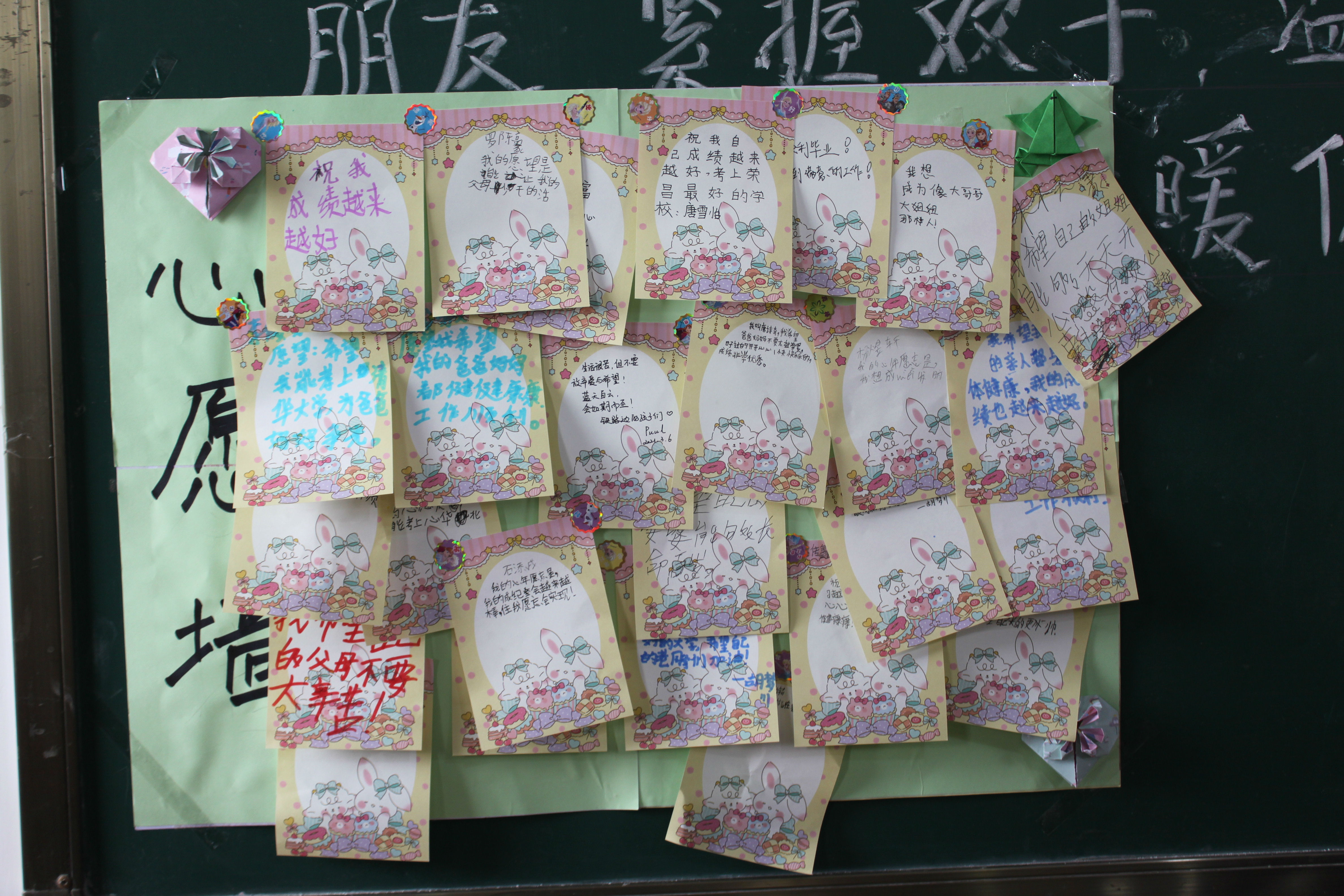 最后,为了迎来崭新的2021年,志愿者们和小朋友们一起装扮了教室,每位同学都将自己的愿望、期盼、祝福等写在便利贴上,涂上心仪的图画,并贴在心愿墙上,作为新的一年激励自己的开关。