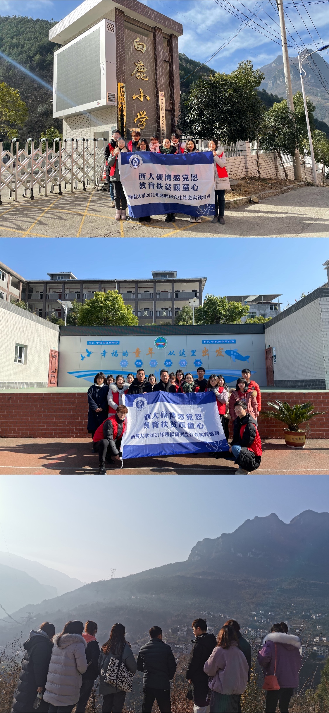 渝陕鄂咽喉,有一镇,名“白鹿”。梯田错落,如诗如画,旖旎壮观;千年盐卤,白鹿引泉,后世传颂。热血自愿倾,白鹿支教行。在山林环绕的白鹿镇,有这样一抹身影,他们怀揣一颗传道授业解惑的赤子之心,将蓬勃朝气带给山村教育事业,用实际行动感召祖国下一代,他们便是园艺园林学院研究生爱心支教团的志愿者们。他们在白鹿做起了织梦师,一心一意,把梦想的种子播进山村孩子们的心里,有力诠释了新时代中国青年的责任与担当。