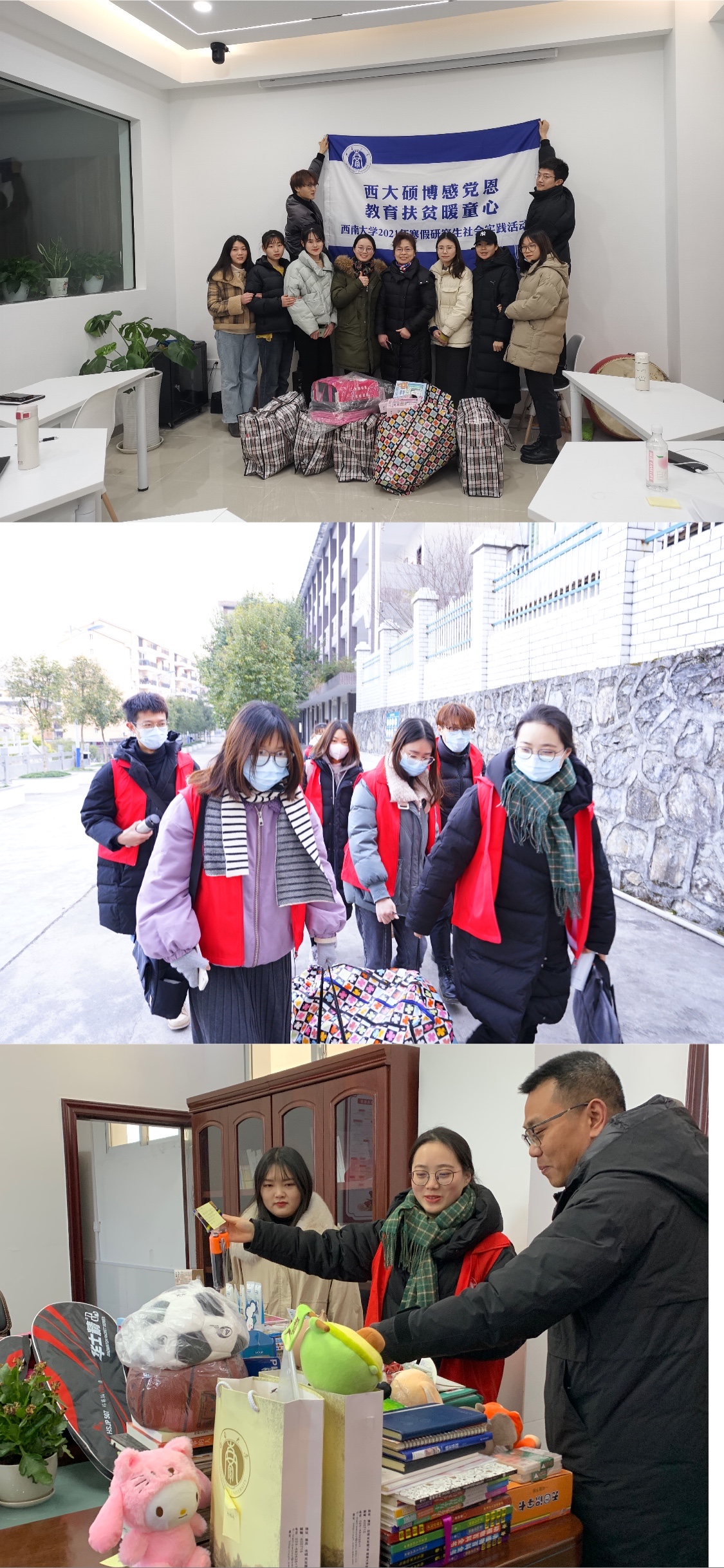 出发前夕,我院研究生爱心支教团在学院师生中发起爱心捐赠的倡议,师生纷纷献出爱心,购买了画册、儿童读物、书包、铅笔、台灯、手套、护手霜、乒乓球拍等爱心物资,涵盖学习用品、生活用品和运动用品。同时,学院师生还为白鹿小学的孩子们制作了精美的贺卡,送上了真情寄语和美好祝福:“希望你们早日成长为一棵棵参天大树,早日成长为国家的栋梁之才”“做自己命运的主人”“好好学习,努力走出大山,去看更加广阔的世界”......
