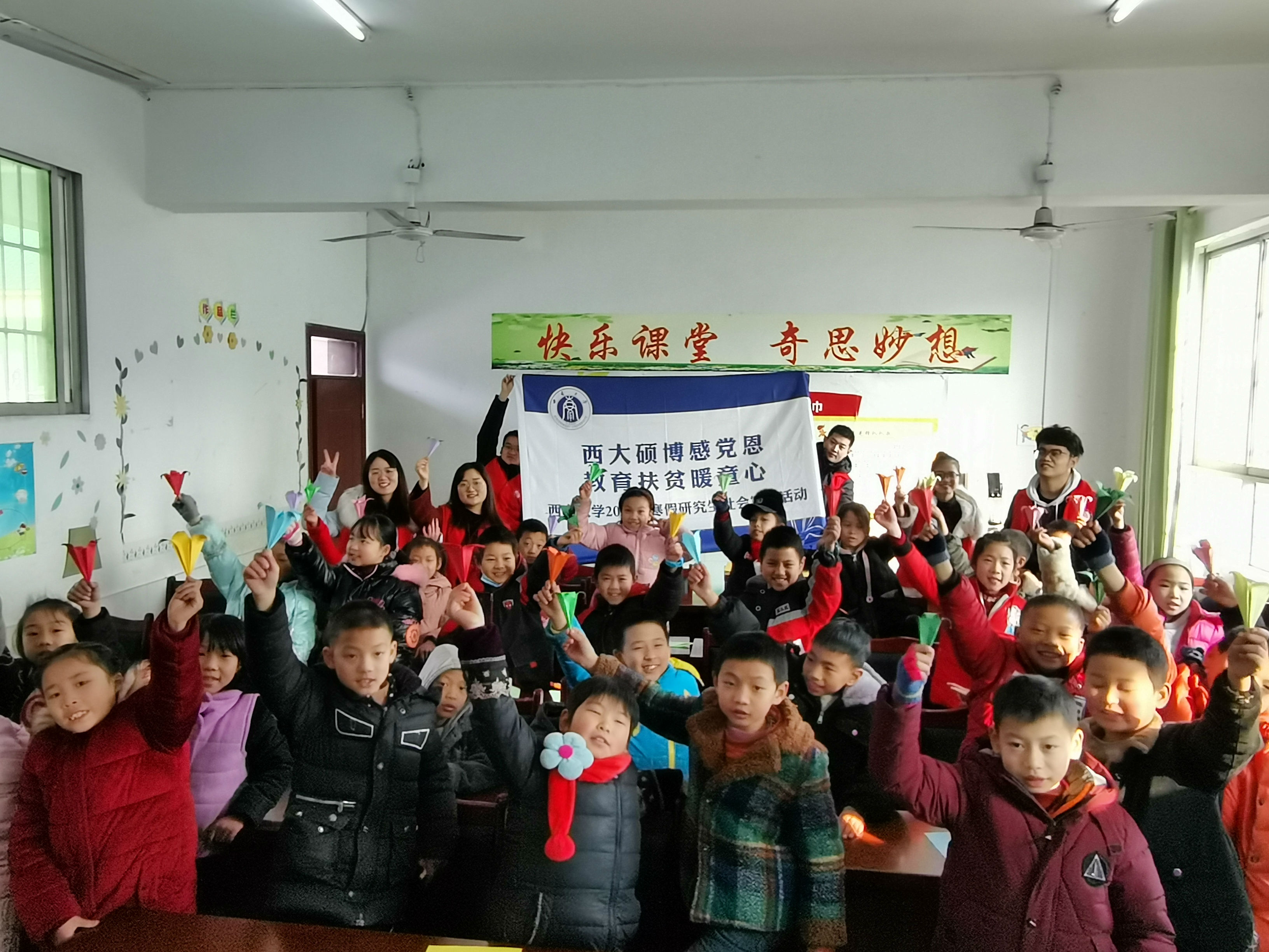 2021年1月18日,由betway西汉姆联研究生党委工作部主办的“西大硕博感恩党,教育扶贫暖人心”活动继续热烈进行。数学与统计学院中山镇小学志愿服务队开展了趣味“四史”课堂和折纸课堂。