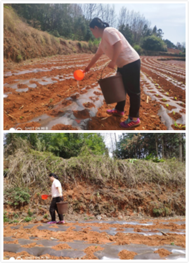 2019级硕士研究生王磊在湖南老家:“春雨连绵,又到了播种的季节,松土、梳地、撒种、盖肥,最后腹上地膜,春种一粒粟,秋收万颗子。”