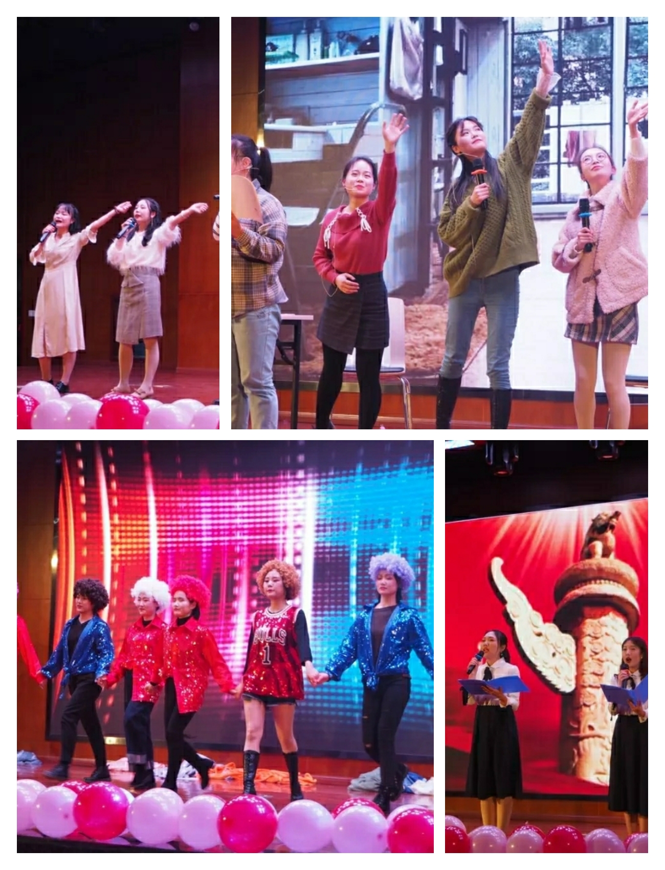 晚会在激情飞扬的开场舞中拉开帷幕,热情火辣的舞蹈调动全场氛围使晚会迅速进入欢快气氛中。紧接着各种独具特色、异彩纷呈的节目轮番登场。吉他弹唱《姑娘》和《离开地球表面》嗨翻全场;古风舞蹈《红昭愿》、古筝弹唱《年轮》和歌曲串烧再次带动全场氛围,吸粉无数;小品《不是钱的事儿》和《下课后》用其浮夸搞怪的表演形式惹得全场观众捧腹大笑;杯子舞《稻香》形式新颖富有创意;《失恋T台秀》用别致的造型和多元化的表演方式将整场晚会带入另一个高潮。诗朗诵《我的祖国》献礼祖国成立七十周年。晚会期间还进行了“你比我猜”、“猜歌名”的互动游戏引得全场观众积极参与。整场晚会高潮迭起、精彩不断。