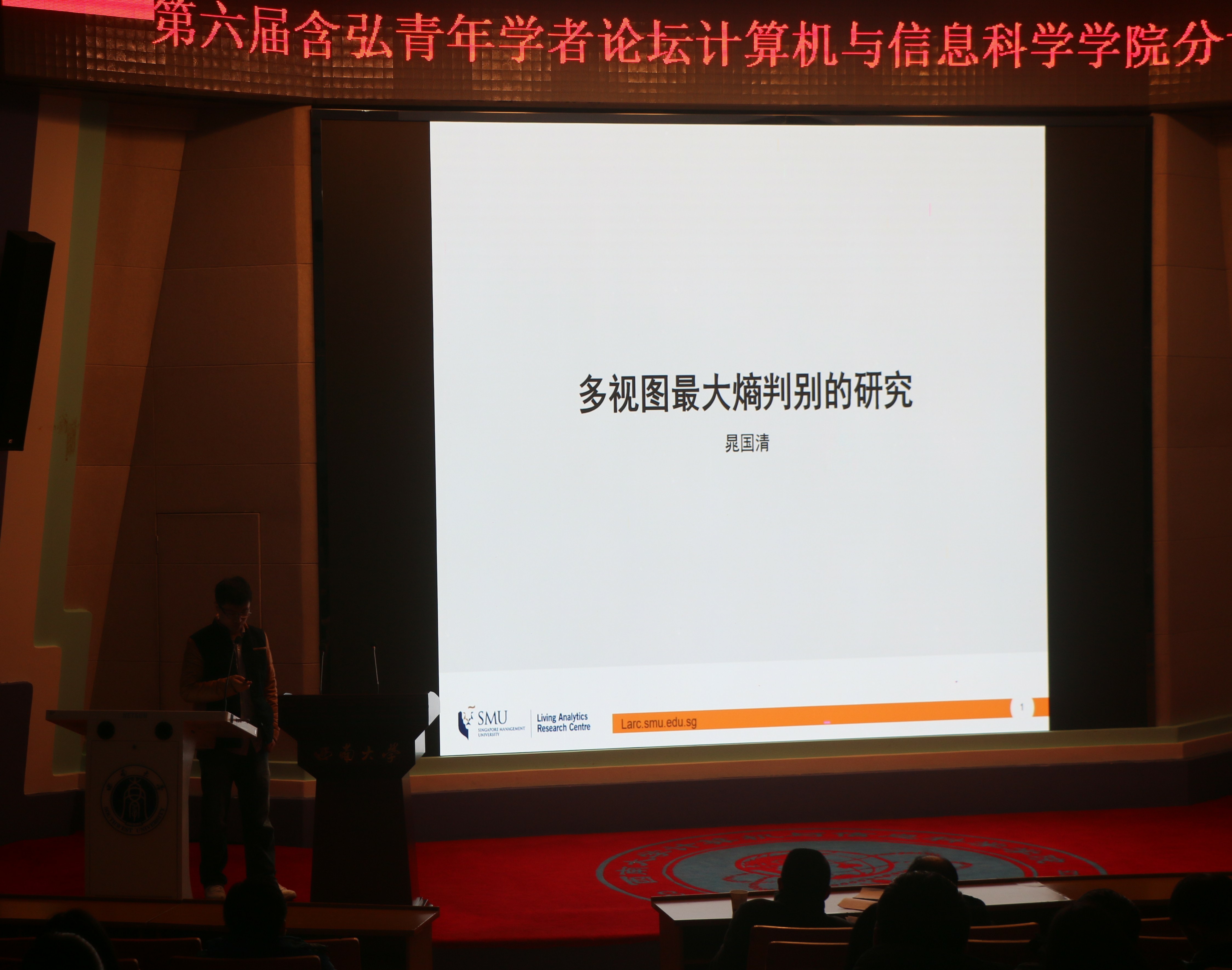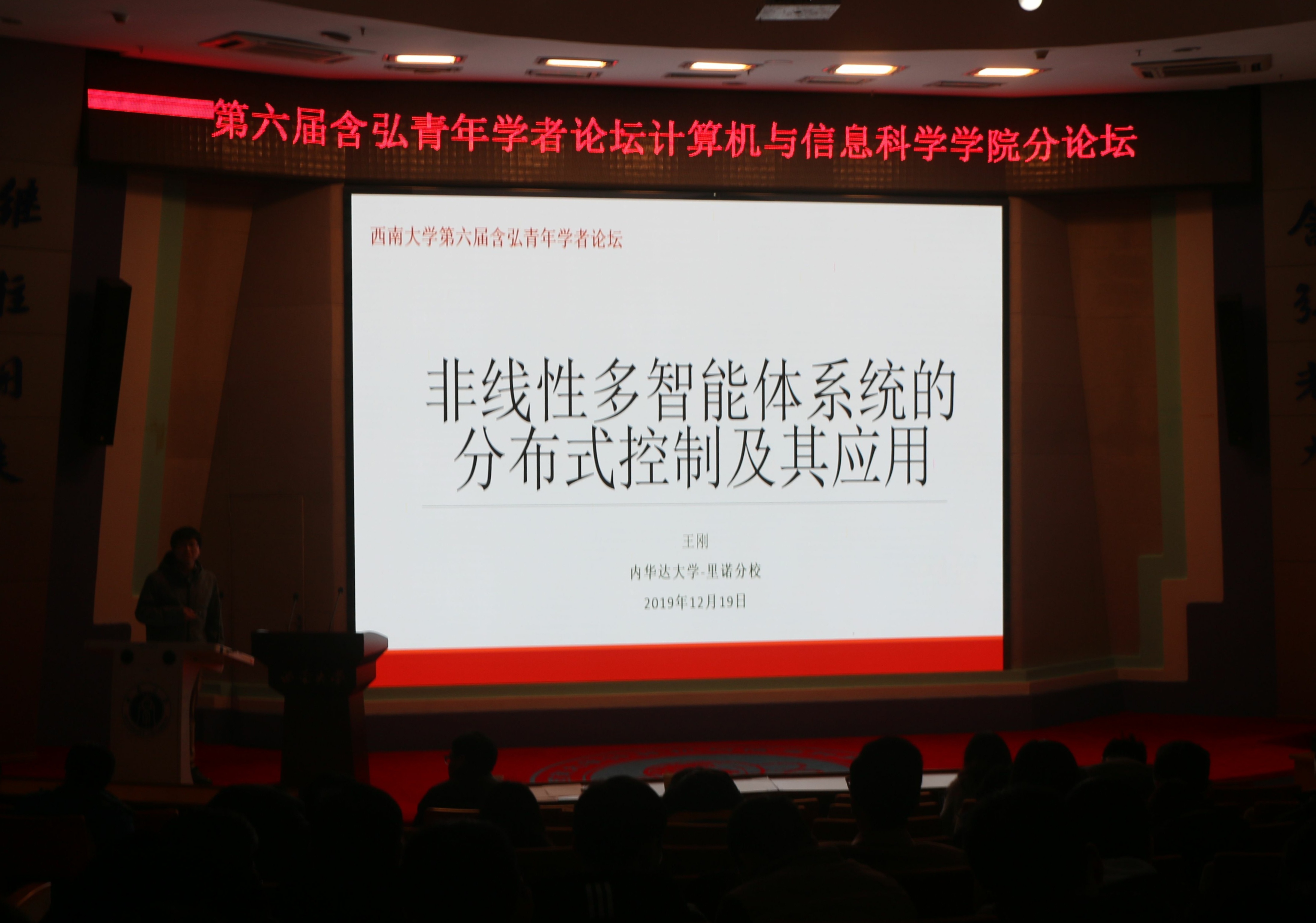 12月19日下午,目前就读于新加坡管理大学博士后的晁国清学者,现任教英国兰卡斯特大学讲师的阮文杰学者以及在美国内华达大学-里诺分校担任助理研究员的王刚学者在betway西汉姆联计算机与信息科学学院一楼学术报告厅为计算机与信息科学学院师生分别作了题为“多视图最大熵判别的研究进展”、“深度学习的安全性测试与验证”和“非线性多智能体系统的分布式控制及其应用”的专题报告,来自学院的百余名师生聆听报告。