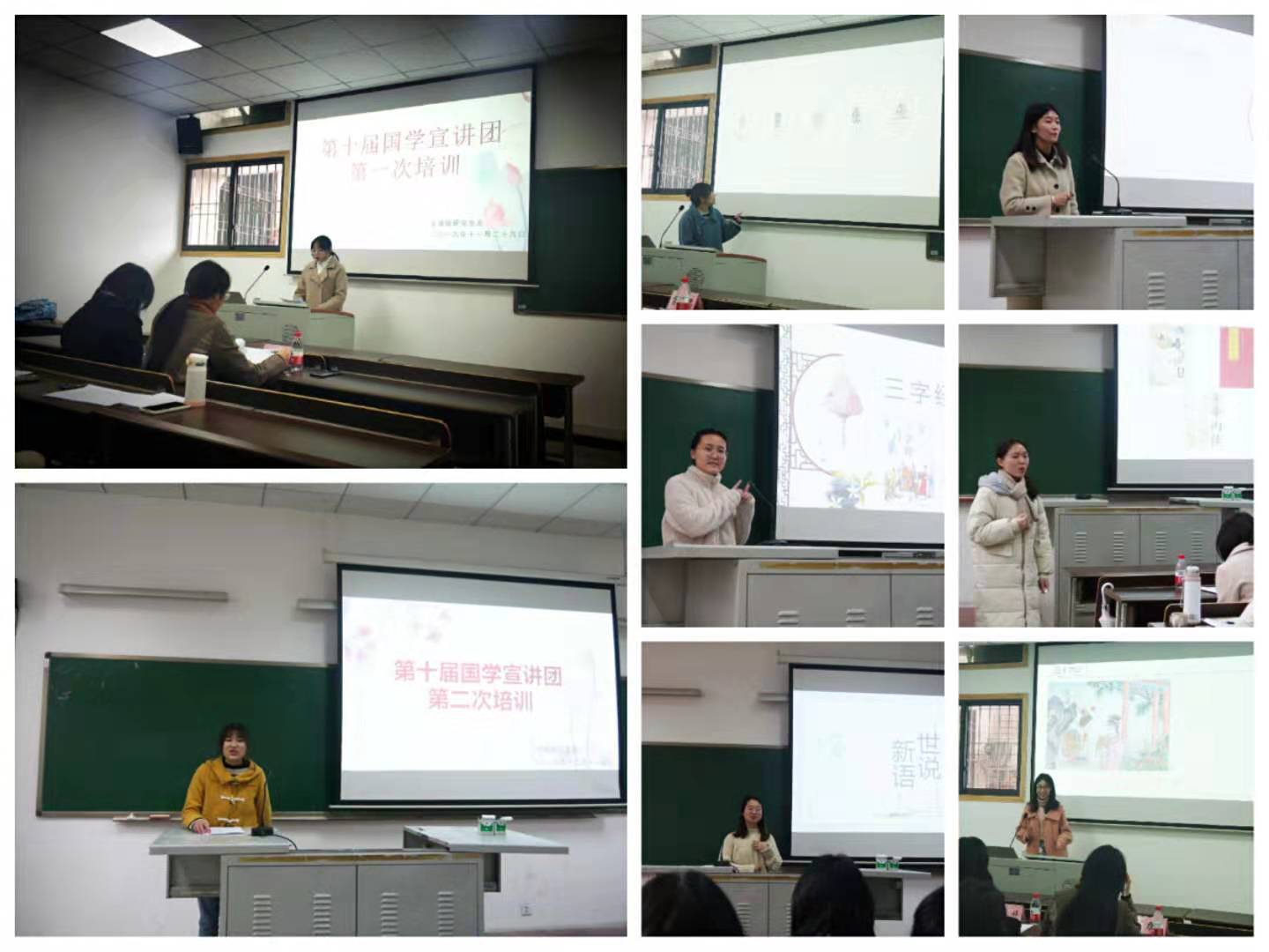 为了让宣讲员们以最好的状态呈现最精彩的宣讲内容,本学期文学院第十届国学宣讲团共开展了两次培训大会,分别于11月29日和12月11日在田家炳122室和文学院111室进行。参加培训的有第十届国学宣讲团全体成员及研究生会学术部全体成员,研究生会主席团蔡节、李婷、肖力思担任培训的指导嘉宾。宣讲成员在培训中分别对自己的宣讲内容进行了展示,宣讲内容涉及有《三字经》、《世说新语》、三十六计、中华二十四节气等。在三位嘉宾的指导建议下第十届宣讲团成员们对自己宣讲内容存在的问题进行了修改和完善。研究生会主席蔡节强调,文学院国学宣讲团除了传承国学经典之外,还是展现文学院研究生风采的平台,希望宣讲团成员能认真准备宣讲内容,充分展现文学院学子的专业素质和精神风貌。