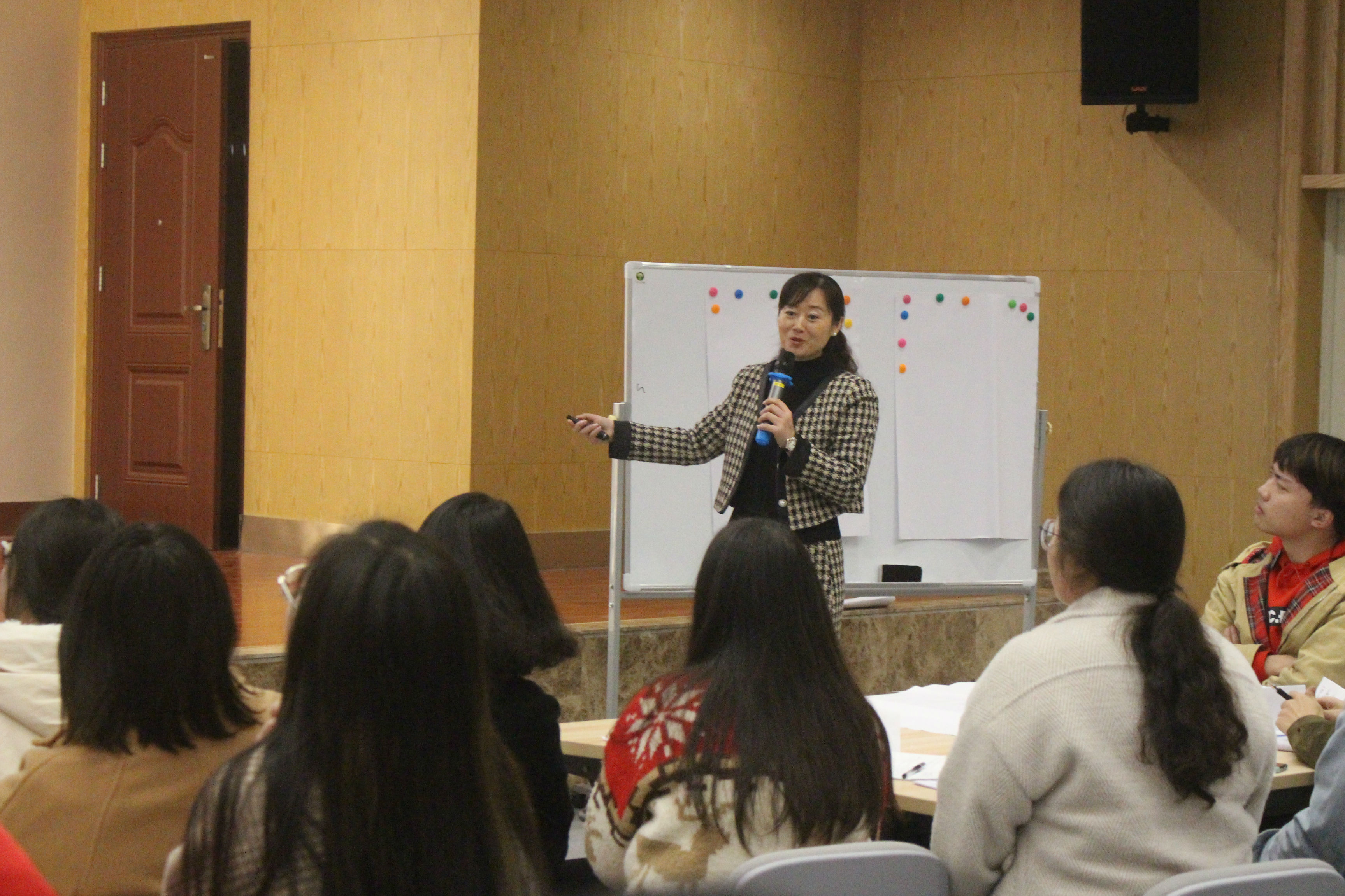 由动物科学学院研究生会主办的“脱颖而出,稳操胜券--研究生求职面试技巧实战训练”培训于12月17日晚上7点,在新图书馆7B101多功能媒体教室举行。此次培训主讲老师为东方企业家商学院副院长吴漫,培训会由动物科学学院党委副书记黄庆洲主持,参加此次培训会的有研究生辅导员吴秋云以及学院全体在校研究生。