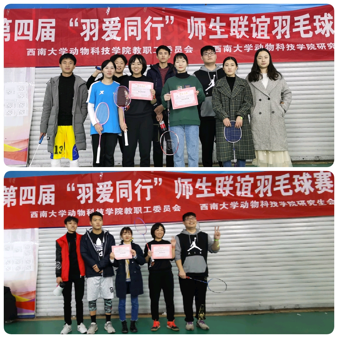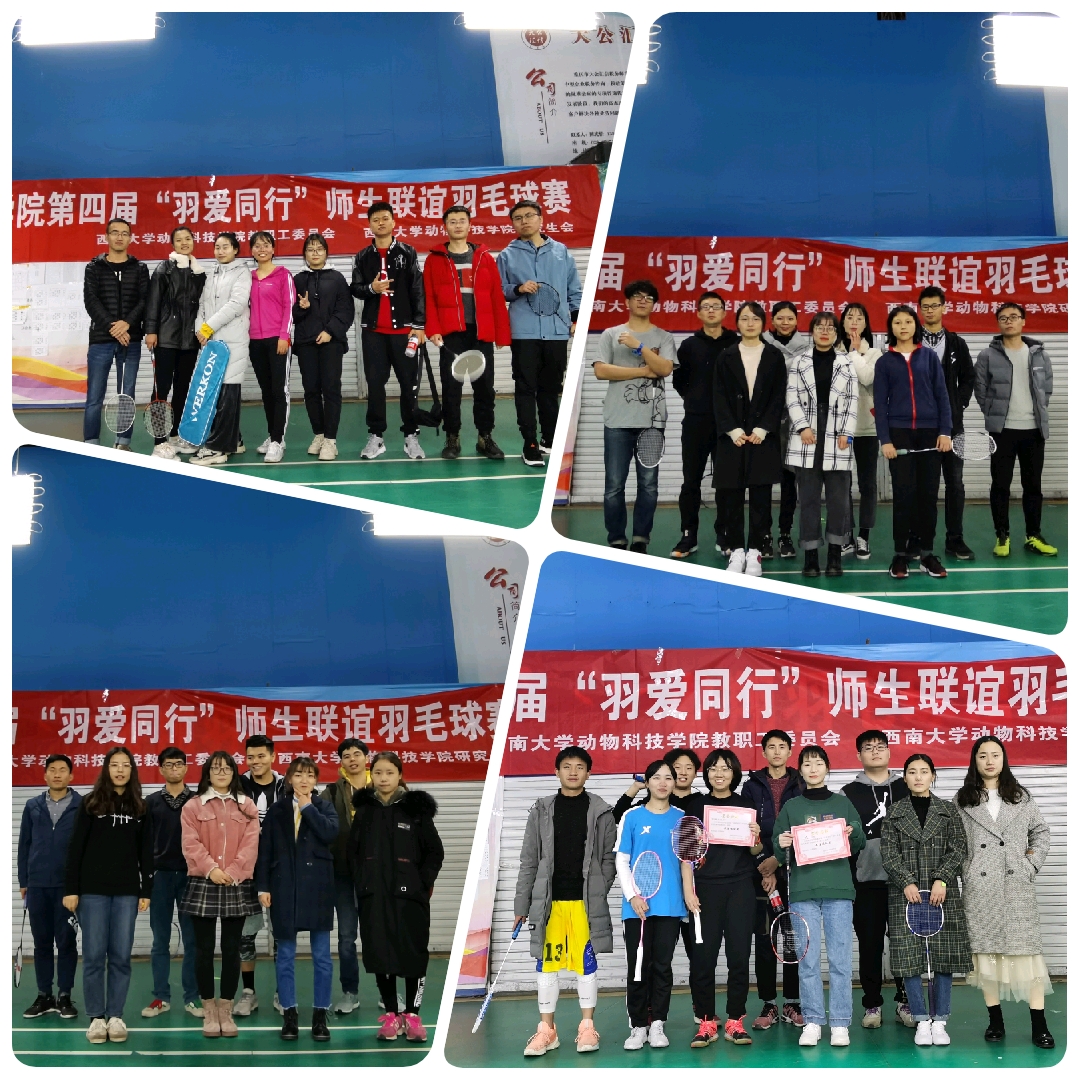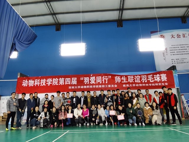 为丰富师生生活,加强学院内部团队建设,提高整体的运动积极性。由betway西汉姆联动物科技学院工会及动物科技学院研究会联合举办的动物科技学院第四届“羽爱同行”师生联谊羽毛球赛于2019年11月29日在校外睿翔羽毛球馆成功举办。