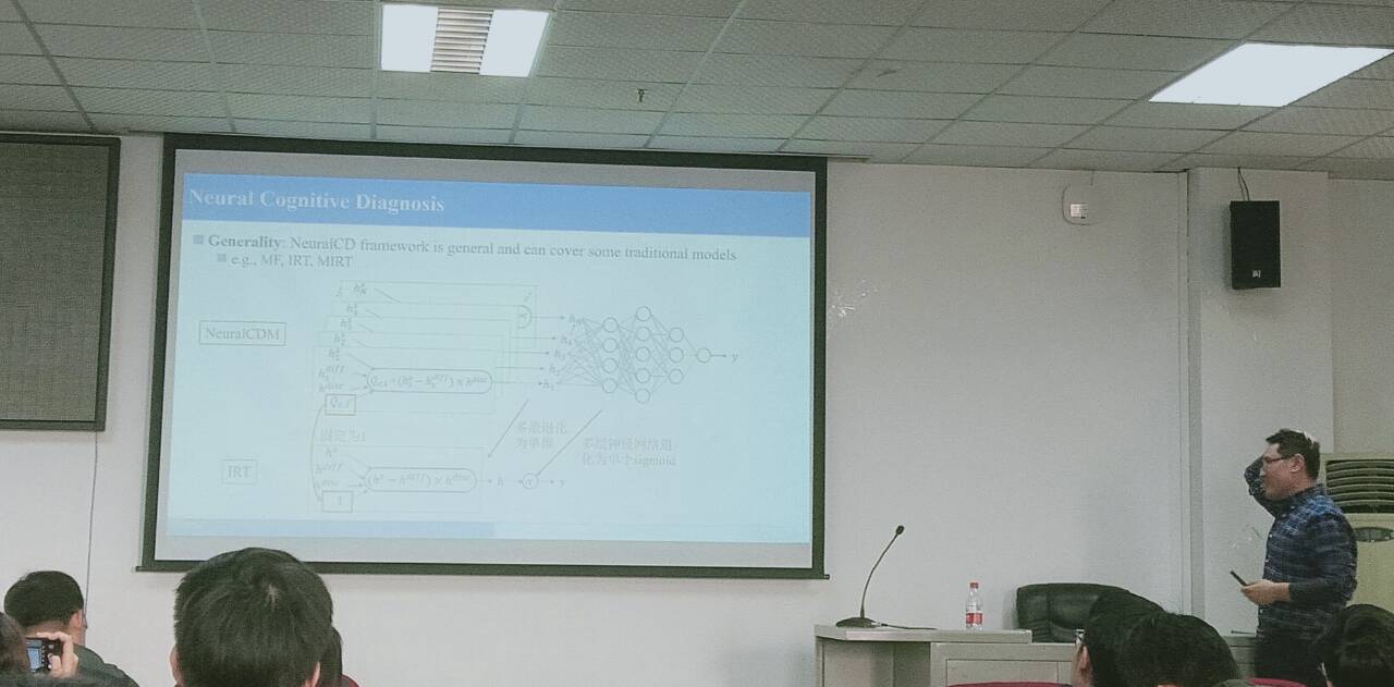 12月7日下午,现任的中国科学技术大学计算机学院特任教授,博导刘淇学者在25教1314会议室为计算机与信息科学学院师生作了题为“基于机器学习的学生认知画像:方法及应用”的专题报告,来自学院的多名师生聆听报告。