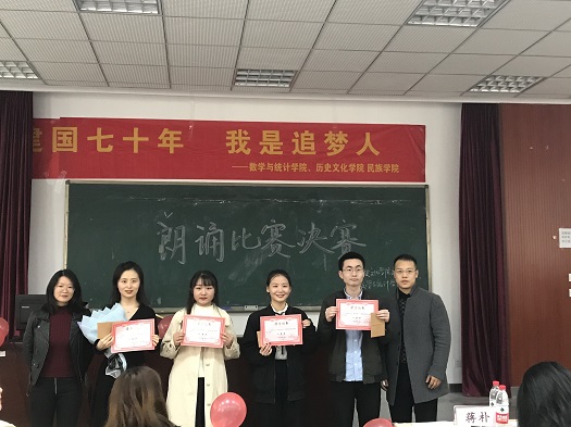 本次比赛由历史文化学院·民族学院党委副书记罗朝斌和研究生辅导员蒋朴,数学与统计学院党委副书记罗利江和研究生辅导员祝陶然,新闻与传媒学院张茜、白一帆和文学院的蔡节担任评委。