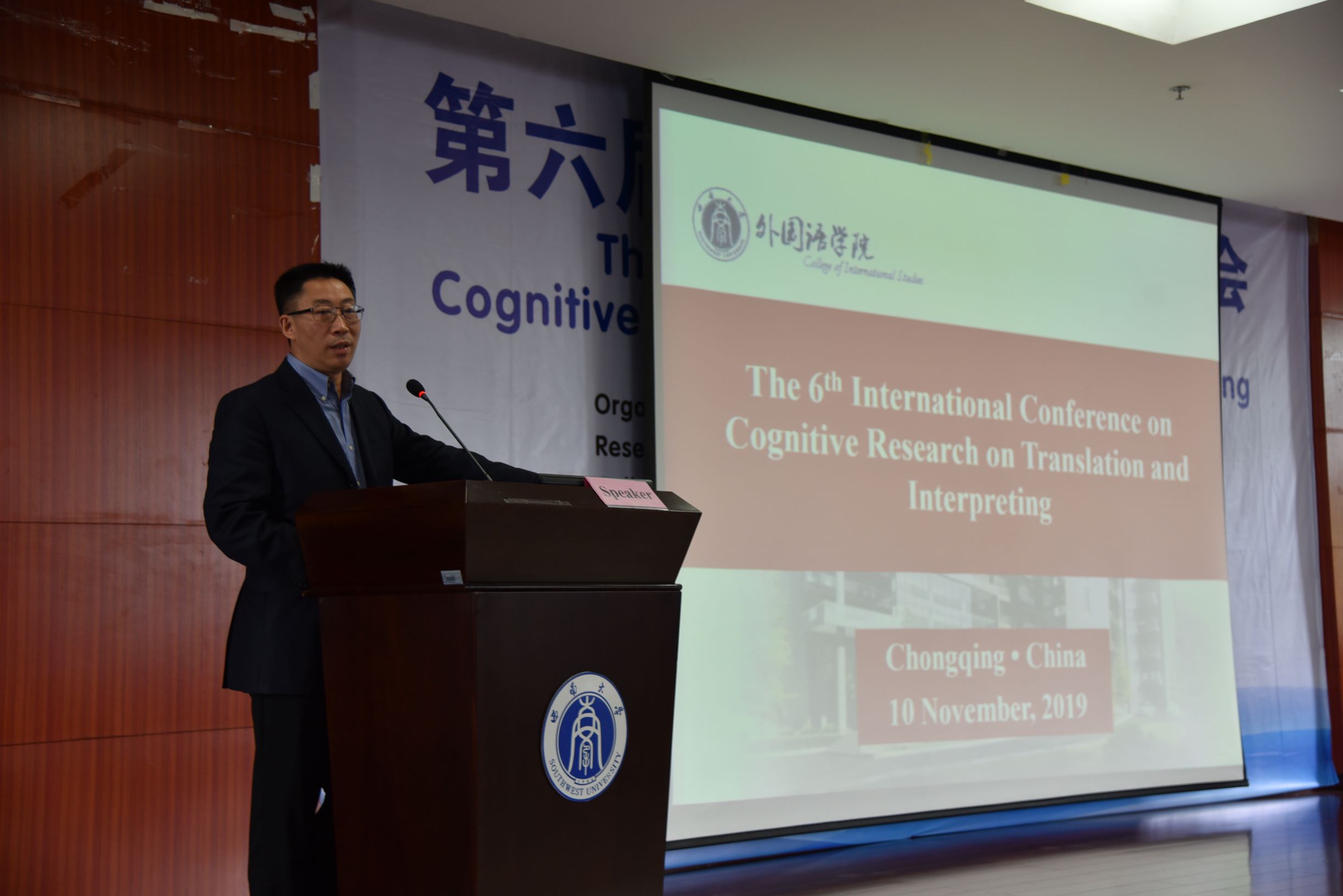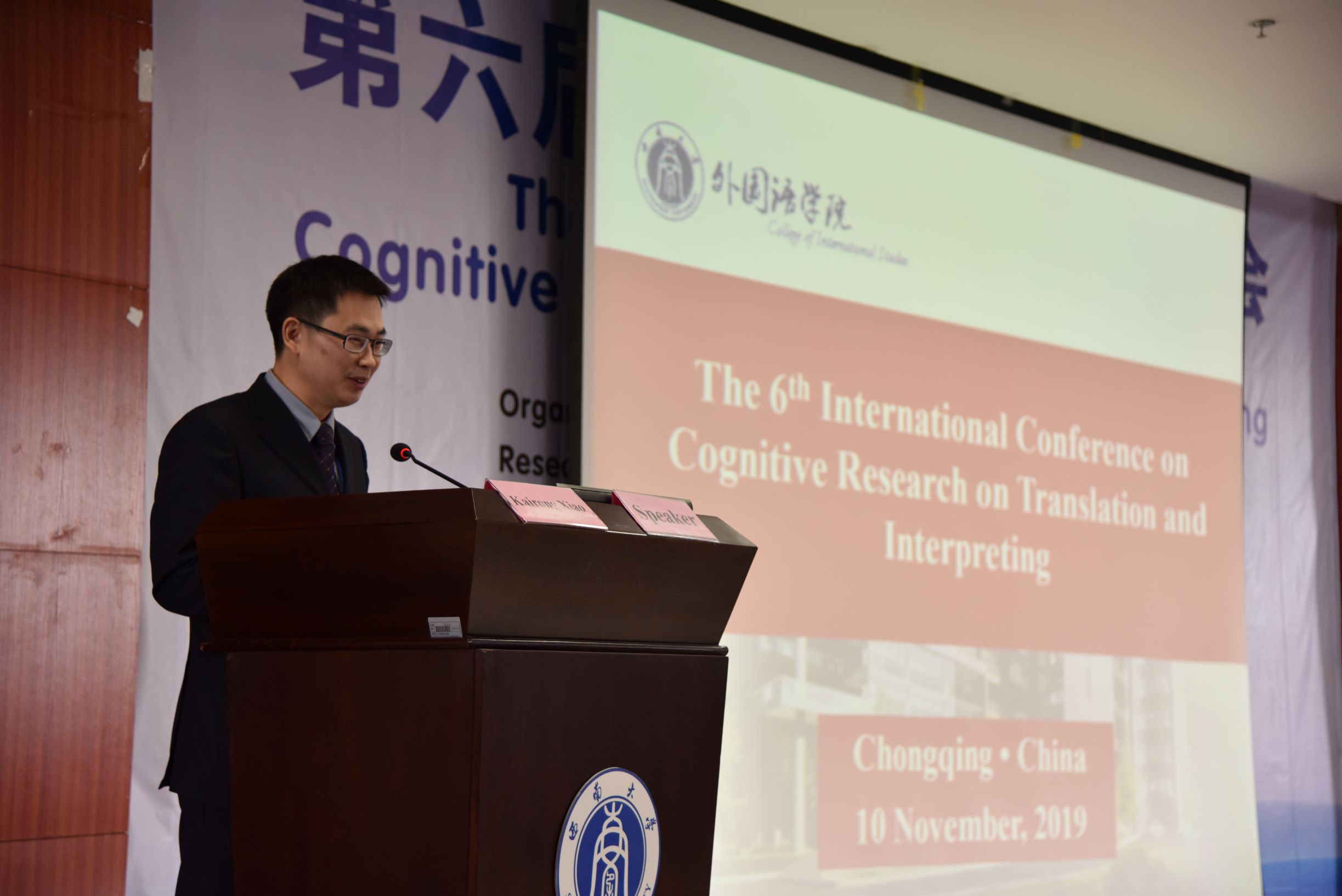 11月9日至10日,由澳门大学翻译传译认知研究中心主办、betway西汉姆联外国语学院和重庆市重点文科基地“外国语言学及外语教育研究中心”承办的第六届翻译认知国际研讨会在betway西汉姆联外国语学院隆重举行。澳门大学李德凤教授和betway西汉姆联文旭教授担任大会联合主席。出席本次研讨会的专家有:澳门大学翻译传译认知研究中心主任李德凤教授,欧洲翻译研究学会主席Arnt Lykke Jakobsen教授,挪威阿哥德大学Sandra L.Halverson教授,Translation, Congnition & Behavior(《翻译,认知与行为》)杂志编辑、博洛尼亚大学Ricardo Muñoz Martín教授,英国杜伦大学跨文化研究中心主任、现代语言与文化学院郑冰寒副教授,广东外语外贸大学“云山杰出学者”卢植教授,中国翻译认知研究会副会长、中国人民大学王建华教授,苏黎世应用科技大学翻译与口译研究所所长Gary Massey教授,澳门大学李丽清(Victoria Lei)副教授,巴塞罗那自治大学高级讲师Patricia Rodríguez-Inés,上海外国语大学谭业升教授,betway西汉姆联肖开容副教授等。来自西班牙、澳洲、挪威、英国、意大利等地区和国家的专家学者,以及来自中国人民大学、四川大学、重庆师范大学、华侨大学、西安交通大学、四川外国语大学、麦考瑞大学、澳门大学、上海外国语大学、广东外语外贸大学、西安外国语大学等数十所高校的百余名专家学者参会,并作了精彩发言。