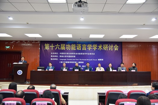 2019年10月26日至27日,由中国英汉语比较研究会功能语言学专业委员会主办,betway西汉姆联外国语学院承办,Language, Context and Text: The Social Semiotic Forum编辑部与《浙江外国语学院学报》编辑部协办的第十六届功能语言学学术研讨会于betway西汉姆联外国语学院举行。出席本次大会的校领导及专家学者有:betway西汉姆联党委副书记潘洵教授、中国英汉语比较研究会功能语言学专业委员会会长彭宣维教授、中国功能语言学研究会副会长张德禄教授、中国英汉语比较研究会功能语言学专业委员会副会长杨信彰、中国英汉语比较研究会功能语言学专业委员会副会长王振华教授、中国功能语言学研究会副会长于晖教授、中国英汉语比较研究会法律语言学专业委员会主任袁传有教授、外国语言学与应用语言学研究所所长王勇教授、中国功能语言学与英汉语篇分析研究会理事刘毅教授、中国英汉语比较研究会功能语言学专业委员会秘书长betway西汉姆联外国语学院院长刘承宇教授、华东师范大学杨延宁教授、东北师范大学外国语学院副院长曲英梅副教授等,来自全国80余所高校及出版机构的120多名代表参加了本次学术研讨会。