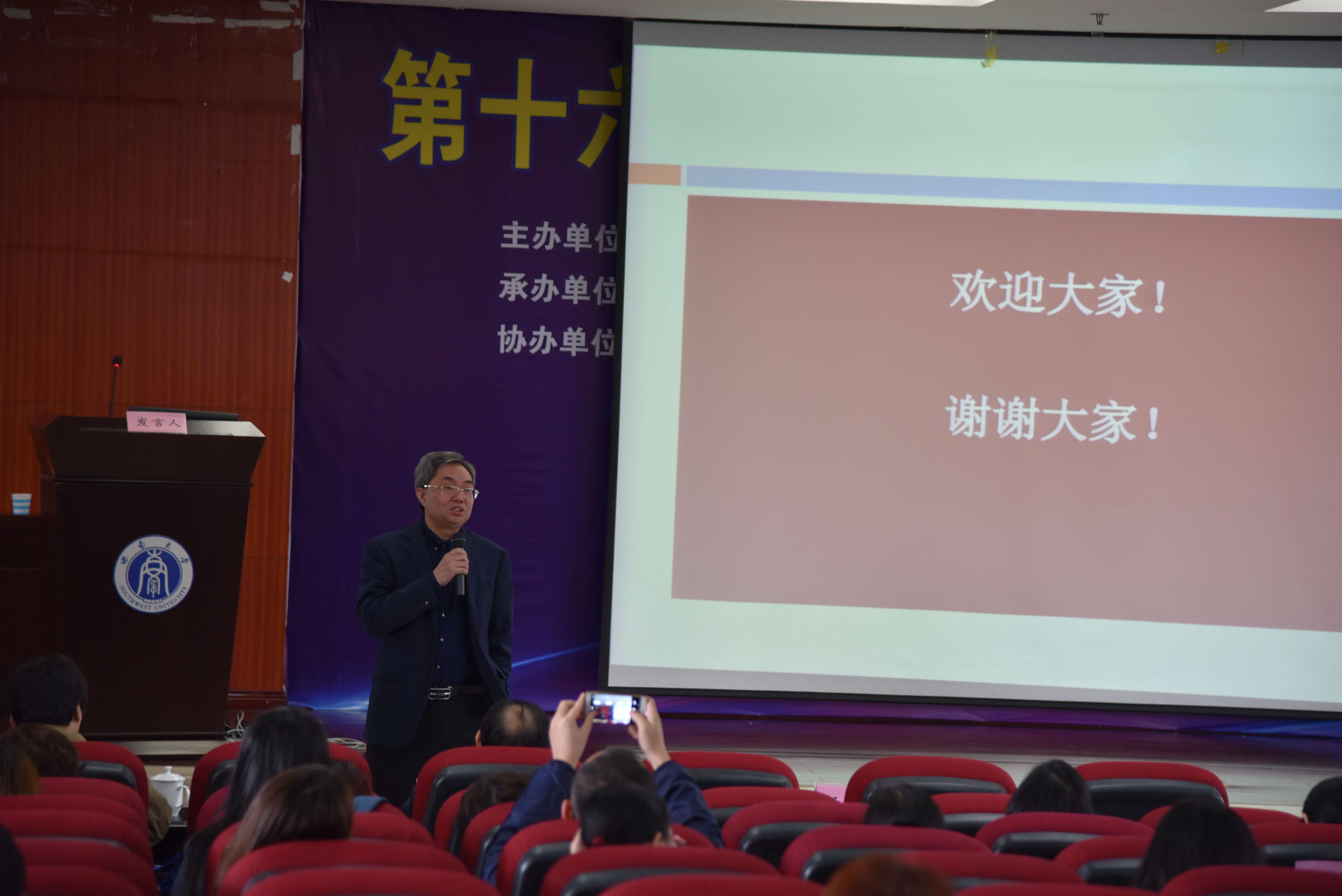 主旨报告之后,大会闭幕式隆重举行,由汕头大学李杰教授主持。各分会场主持人汇报了本组发言与专家点评情况。中国英汉语比较研究会功能语言学专业委员会副会长张德禄教授对本次研讨会做了全方位的总结发言。中国英汉语比较研究会功能语言学专业委员会秘书长刘承宇教授受研究会的委托,报告了25日晚召开的理事会决议事项。华中师范大学王勇教授作为下一届承办单位代表上台发言,欢迎专家学者们届时参加会议。最后,中国英汉语比较研究会功能语言学专业委员会会长、深圳大学彭宣维教授上台讲话,他总结了本次研讨会并表达了对系统功能语言学未来研究发展的希望。