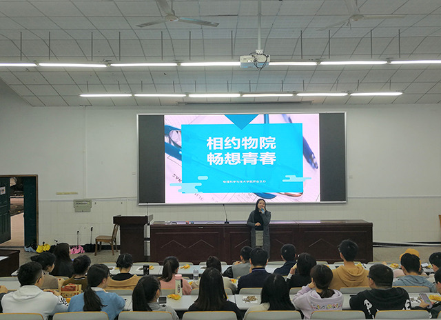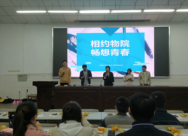为促进我院研究生会各部门成员之间的良好交流,引导新一年的学生工作更上一层楼,2019年10月25日下午3点到5点,由betway西汉姆联物理科学与技术学院举办、betway西汉姆联物理科学与技术学院研究生会文娱部承办的研究生干部干事交流大会,在物理科学与技术学院小阶梯教室举行。该活动以“相约物院,畅想青春”为主题,全体研究生会成员和班委参加了此次活动。