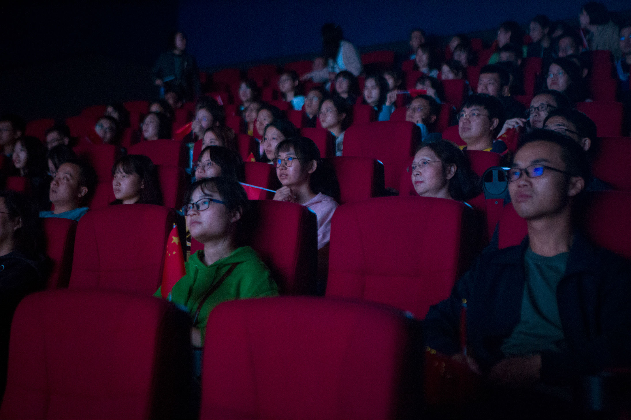 《我和我的祖国》描述了祖国70年发展变迁,从新中国成立的第一面红旗冉冉上升,到女排奥运会首次夺冠,再到香港回归、北京奥运会、神州十一号飞船返回成功着陆、纪念抗战胜利70周年阅兵式等7个祖国经历的历史瞬间。观影过程中,老师和同学们产生了代入感和共鸣,既有笑声,也有泪水,随着这7个历史瞬间一起,以普通人的视角观察、感受并参与这个时代。电影结束时,大家情不自禁地挥动手中的小国旗,合唱歌曲《我和我的祖国》。