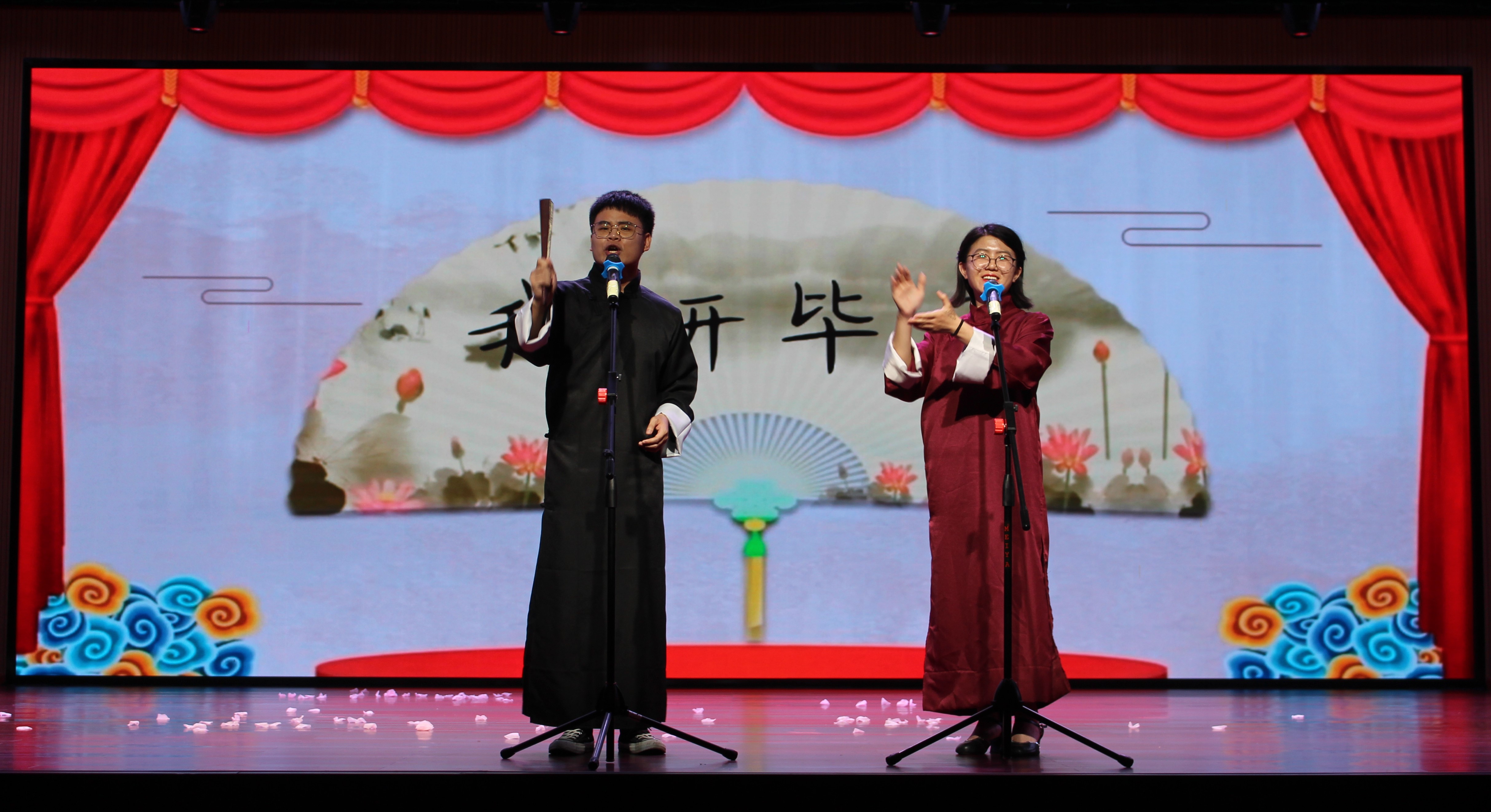 晚会进行至中场,《我为自己代言》、《刚刚好》等歌曲串烧诉说着大学生活的收获与感慨;在情景剧《成长 蜕变 收获》中,更是将懵懂到成熟的足迹刻画得淋漓尽致,牵动着在场每位观众的心;古风舞蹈《不染》使现场气氛变得柔和起来,轻盈的舞姿与飘落的花瓣意境深远,让人回味无穷。