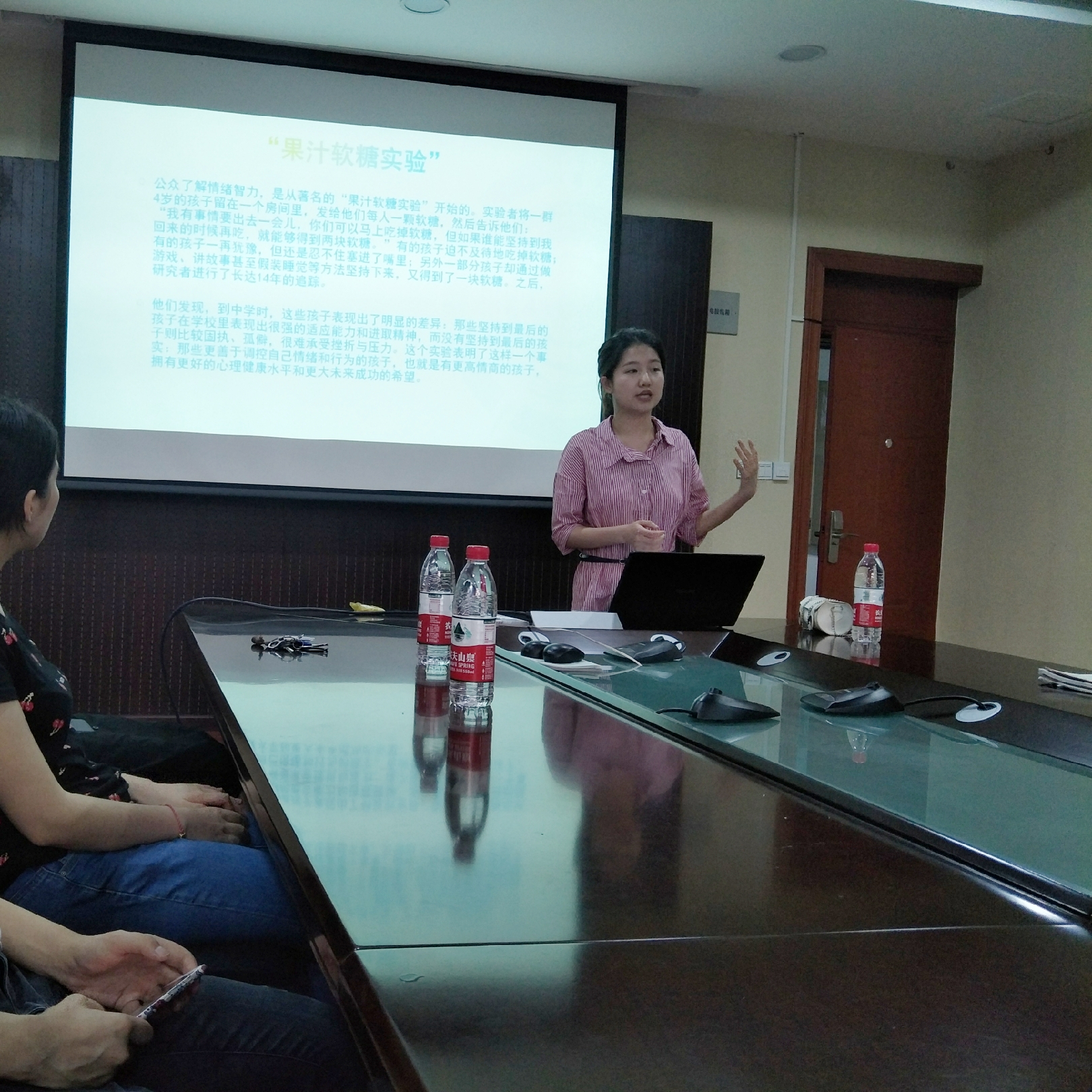 徐飘燃对理性情绪行为疗法作出了重点阐述。理性情绪行为疗法由美国心理学家埃利斯创立,用于情绪调节,核心是找到产生负面情绪的自动思维,并将其改变为合理、健康的认知,从而达到消除和调节不良情绪的目的。沙龙会上徐飘燃首先向大家介绍了情绪智力的概念,使大家了解到情绪智力在一个人成功要素中占有很大比重,是大家需要具备的一种重要的能力。接下来,徐飘燃向大家分享了著名的“果汁软糖实验”,这个实验结果表明善于控制自己情绪和行为的孩子拥有更好的心理健康水平和更大未来成功的希望,这也告诉我们学会控制自己情绪的重要性。紧接着,徐飘燃同学通过分析不同的事例向大家讲解如何理性的调节和控制自己的情绪,大家都收获颇丰,获益良多。