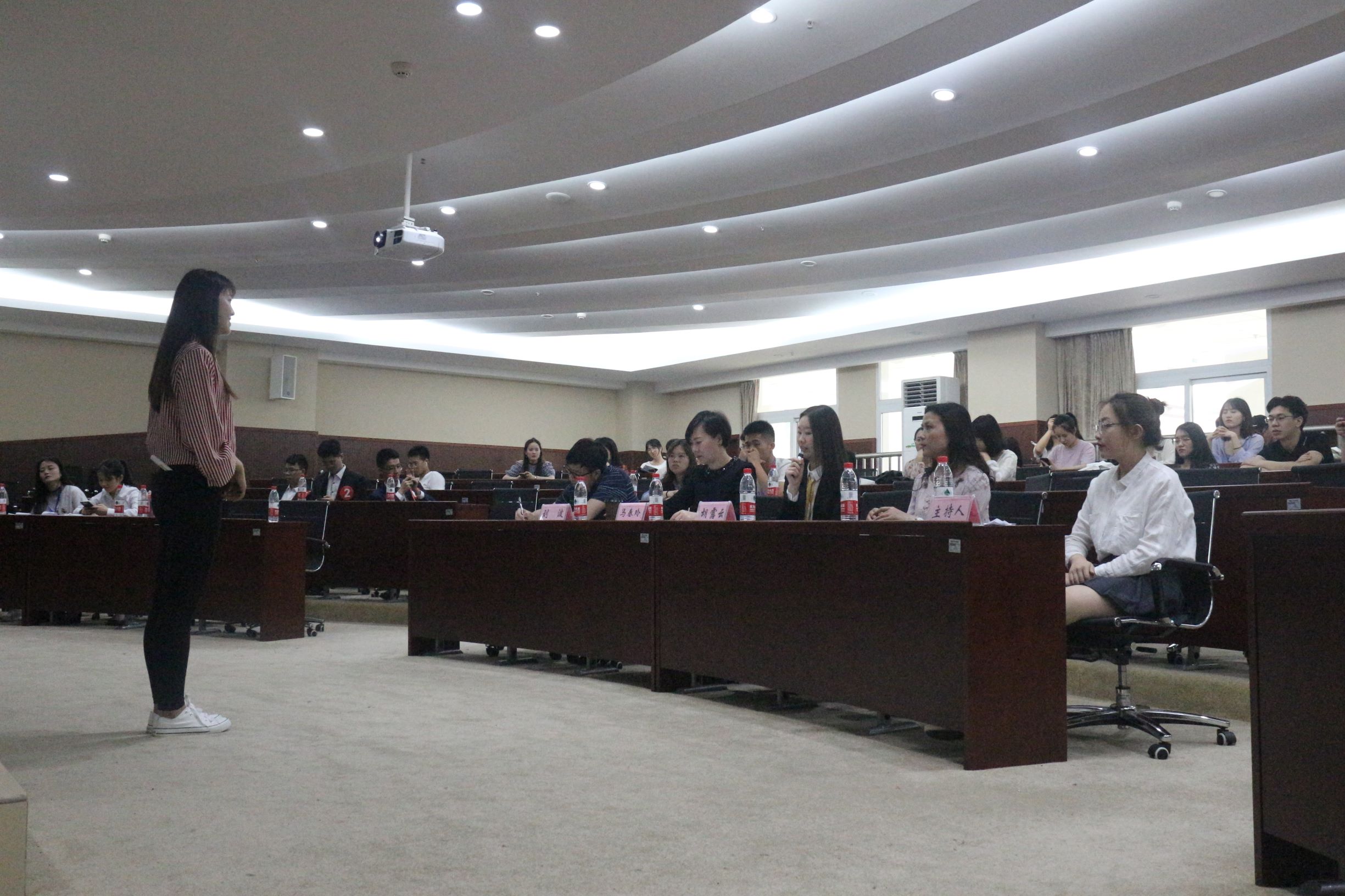 6月1日14:30,“庆祖国七十华诞 展学子职场风采”betway西汉姆联第十四届研究生五月文化艺术节之研究生职场招聘大赛决赛在经济管理学院B201报告厅举行。决赛邀请高级礼仪讲师马春玲、宜信财富胡露云和重庆经贸管理专修学院副院长刘波担任评委,经济管理学院研究生辅导员柳为易和各学院研究生到场观赛。