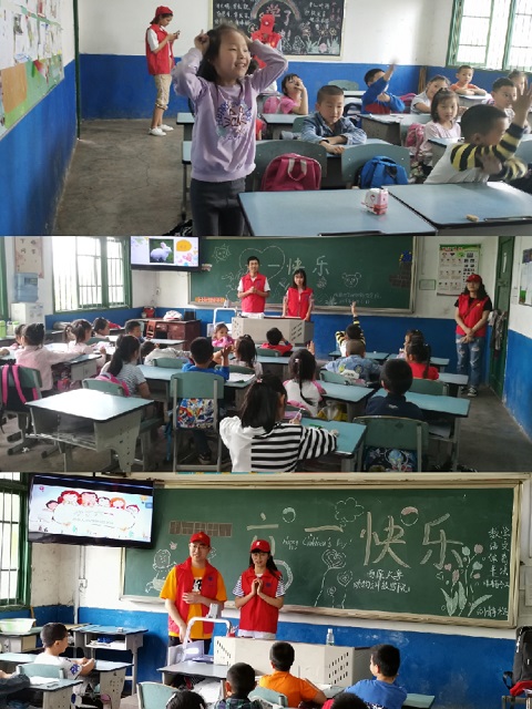 经过一段崎岖的山路志愿者团队到达了天印小学,然后为他们即将到来的六一儿童节准备了一些小礼物,希望通过此次支教能和他们一起过六一。支教的对象主要针对一、二年级的小朋友,志愿者们带领他们走进动物讲解小课堂,通过一张张精美的PPT的讲解以及对小动物的模仿和小朋友之间的互动使他们更好地学习到动物相关的知识,以及身边常见小动物的生活习性等。在动物小课堂讲解结束后,志愿者团队将不同小动物的面具分发给各个小朋友,使他们进一步体验动物小课堂带来的乐趣。