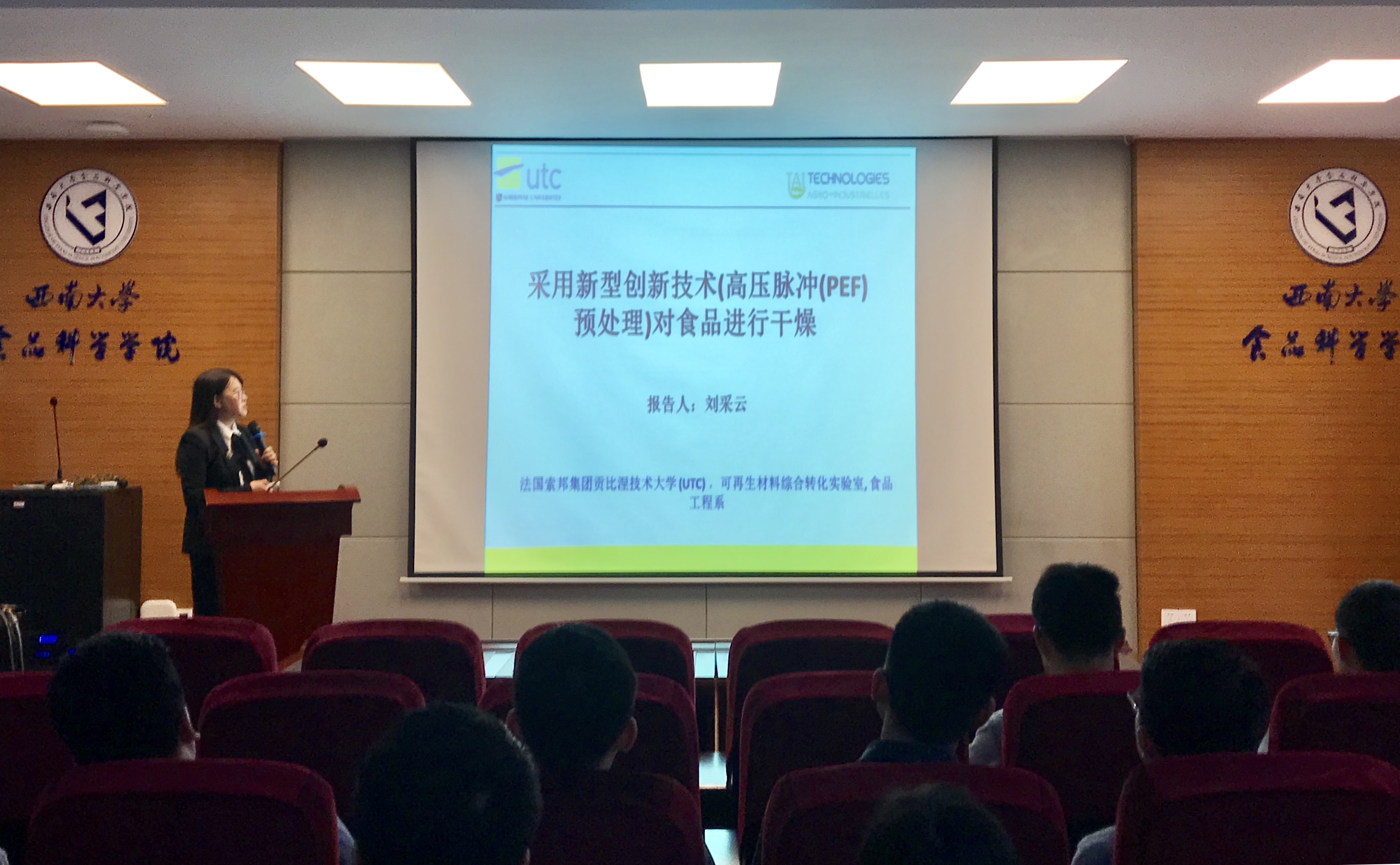 5月13日下午,betway西汉姆联第五届含弘青年学者论坛——食品科学学院分论坛在食品科学学院举行,本次论坛由法国索邦集团贡比涅技术大学可再生材料综合转化实验室的刘采云博士作题为“采用新型创新技术(高压脉冲(PEF)预处理)对食品进行干燥”的学术报告。本次报告由曾凯芳副院长主持,学院师生到场聆听。