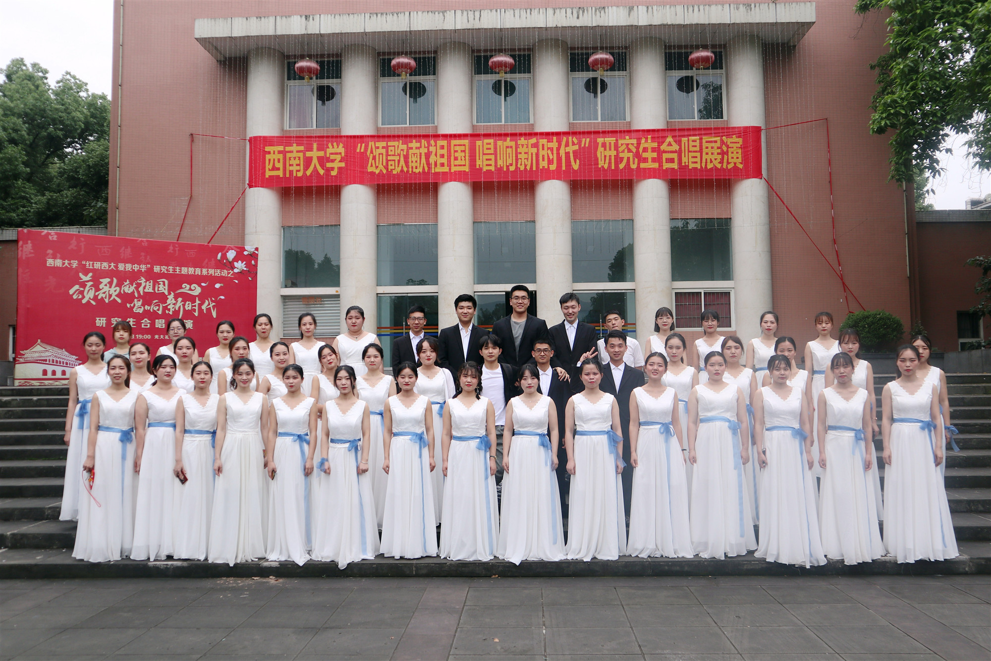 5月15日晚七点,由betway西汉姆联党委研究生工作部、研究生院主办,校研究生会承办的betway西汉姆联“红研西大·爱我中华”研究生主题教育系列活动之“颂歌献祖国·唱响新时代”研究生合唱展演在光大礼堂顺利举行。校党委副书记潘洵,党委宣传部部长李荣华,党委研究生工作部部长尹晓东,研究生院院长赵国华及各二级培养单位负责人出席活动。上千余名学生共同观看此次展演,现场精彩纷呈,气氛热烈。经过激烈角逐,文学院“鹿鸣合唱团”演唱的《不忘初心》荣获此次展演“一等奖”。