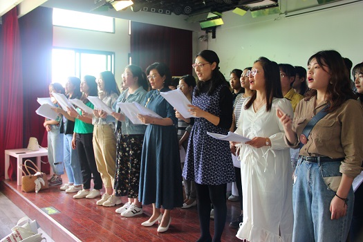为贯彻落实习近平新时代中国特色社会主义思想和热烈庆祝中华人民共和国成立70周年,教育学部积极筹备“颂歌献祖国,唱响新时代”研究生合唱展演活动。4月17日12时教育学部研究生师悦合唱团在田家炳712教室进行排练,校研究生会副主席李艾玲等一行人前来指导和交流。