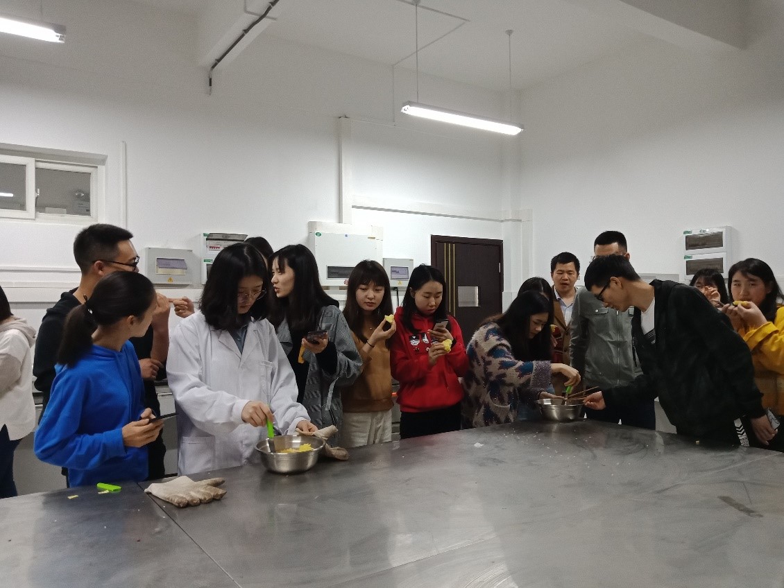 接下来,活动中开展了烘焙试验。在工作人员的带领下,同学们亲自体验配料、称量、搅拌、烘烤等一系列操作。该环节增强了活动的趣味性,加深了各学院的同学们对食品科学学院和食品学子们日常学习生活的了解。