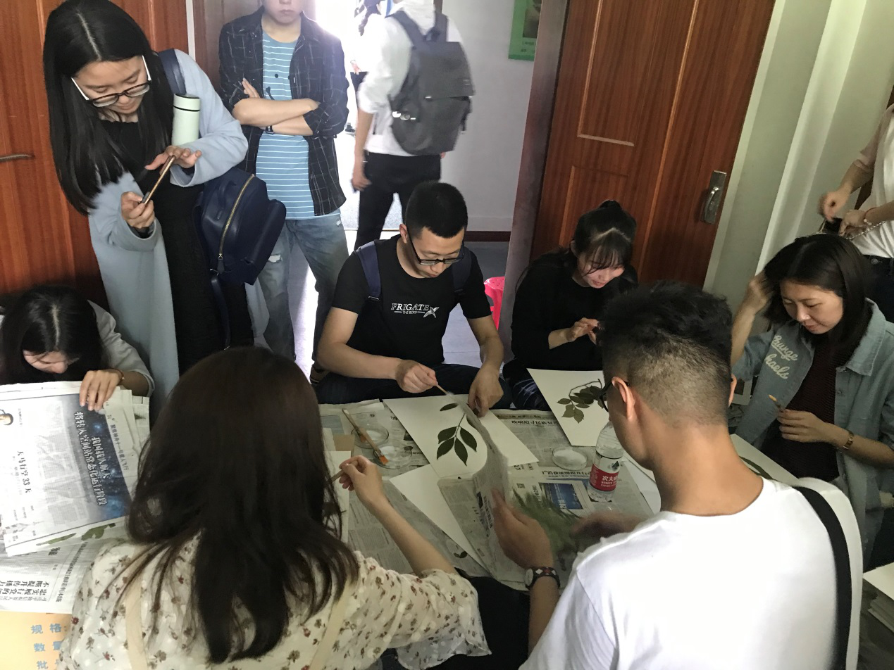 最后,工作人员为参观者讲解了植物标本的制作过程,同学们也挑选了自己喜欢的植物,在工作人员的带领下,小心翼翼涂抹浆糊,将其固定在白板上,在这个过程中感受到了亲手制作植物标本的喜悦。