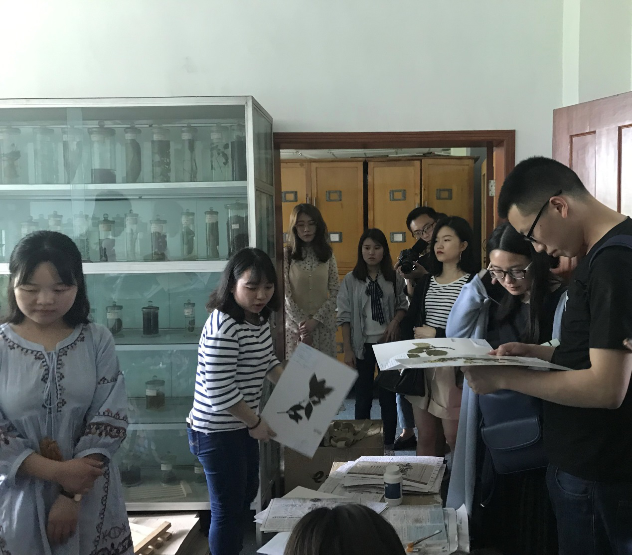 紧接着,参观了植物标本室。植物标本室内现有高等植物标本约4万余份,涵盖了苔藓、蕨类、裸子和被子植物等各个高等植物类群,共计380余科,其中珍稀濒危及国家重点保护野生植物标本近百份。讲解员为同学们讲解了一些植物的功效,同学们不禁感叹大自然的神奇,一些微不足道的植物却有着奇特的药用价值。