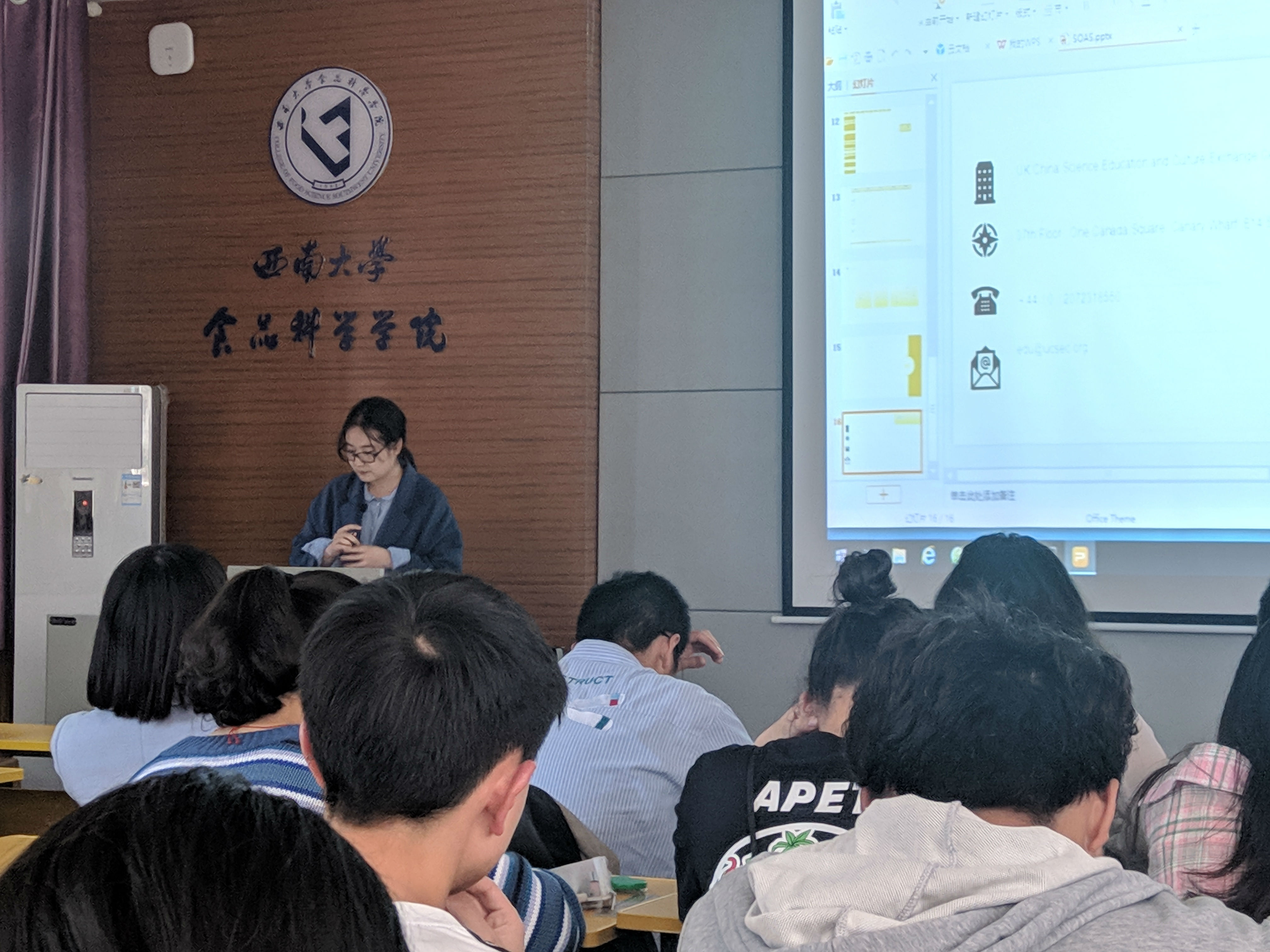 讲座上,国际处马老师讲解了betway西汉姆联交流学习政策,以及学校的经费支持,强调了获取学生出国交流学习项目资讯的方式。中英交流中心王老师重点介绍了访问英国雷丁大学、伦敦大学等有关食品科学研究项目的内容及亮点,为本院学生解答出国条件、访学项目等方面的疑惑,同时为本院学生访学提供可行的建议和发展方案。