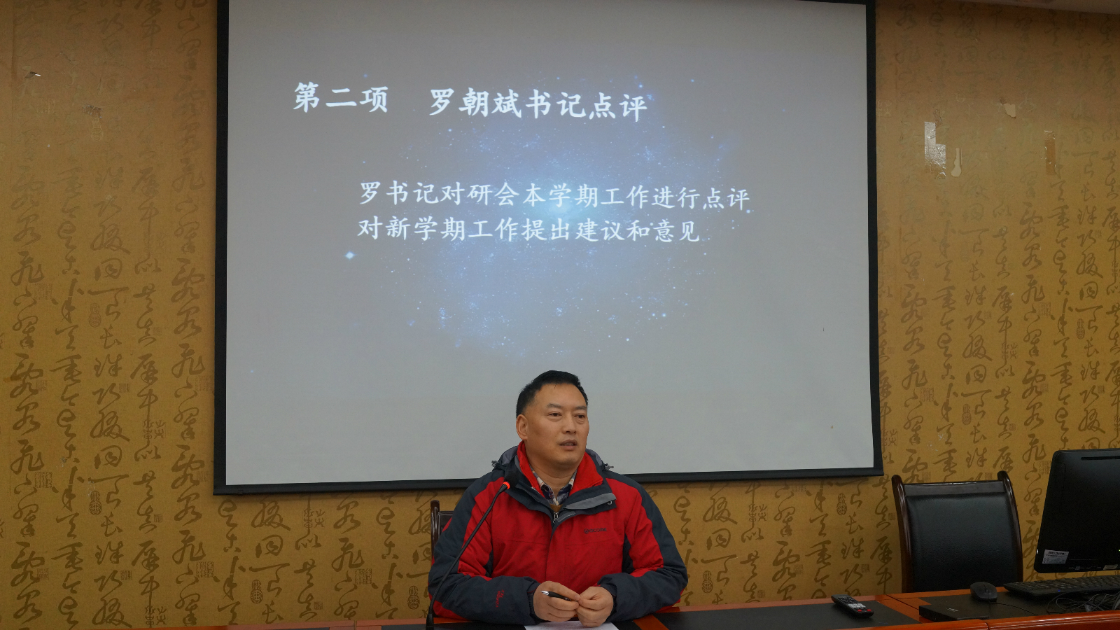 “回顾2018年我们携手走过的的岁月,喜悦伴着汗水,成功伴着艰辛,次刻,2019年已如期而至……”伴着主持人的开场白,大家一起回顾了过去一年的笑与泪,乐与忧,并进行了活动的第一项——罗书记致辞。致辞主要包含三个方面:首先,肯定成绩、翘首盼新年。罗书记针对过去一年研会取得的成绩提出了肯定,并对研会在新一年的工作充满期待;其次,立德树人,行远不息。罗书记在致辞中强调,作为一名学生,必须时刻牢记校风校纪,对自己高标准、严要求,坚守德育为先的底线;最后,安全第一,预防为主。在对大家进行道德教育之后,罗书记又强调了安全的重要性,让大家时刻将安全牢记心中。通过罗书记的致辞,大家在备受鼓舞的同时,也明白了守纪律、讲安全的重要性。