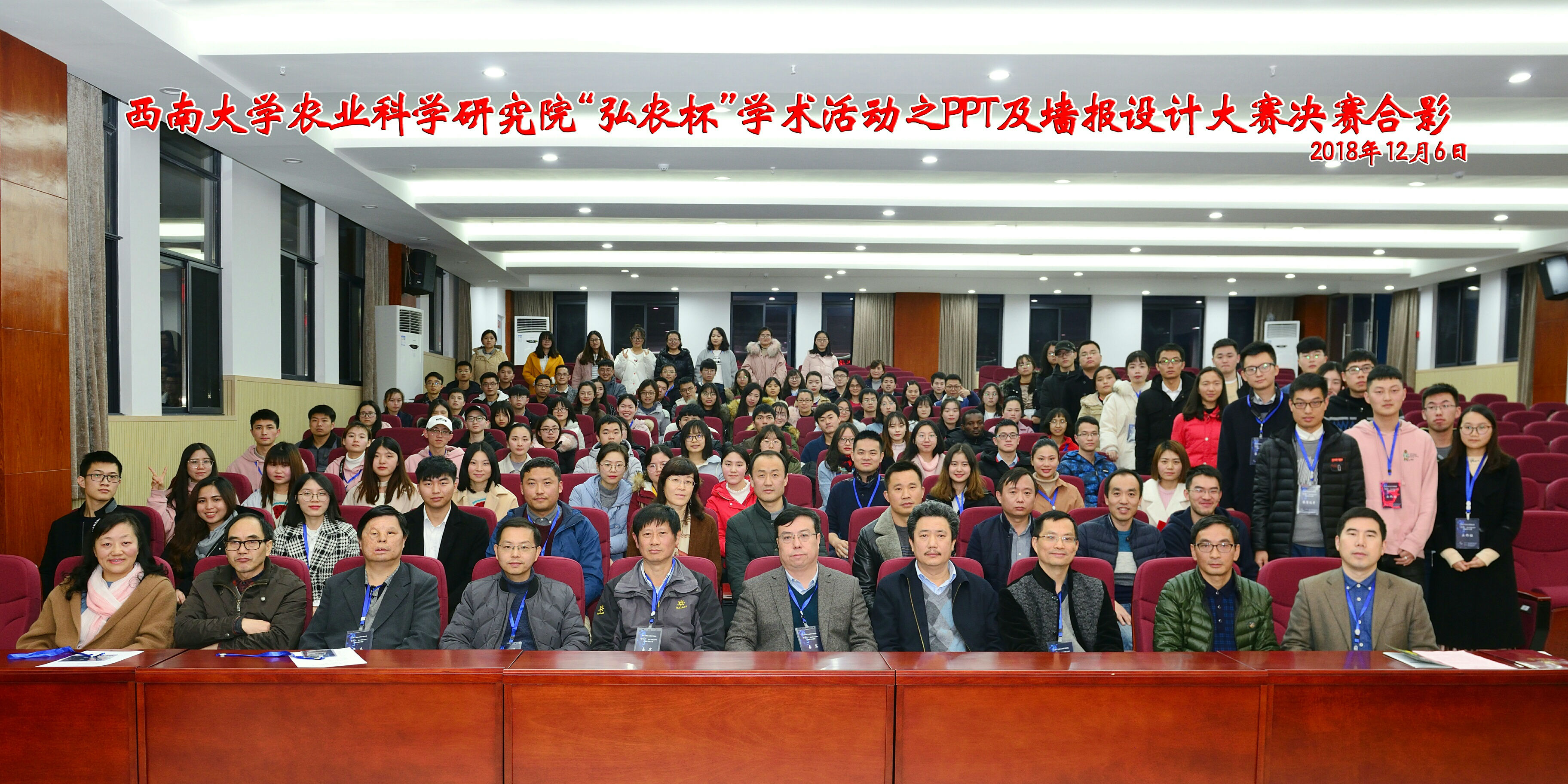 12月6日,学校党委研究生工作部及农业科学研究院主办的“弘农杯”学术活动之PPT及墙报设计大赛决赛暨颁奖典礼在隆平楼举行。学校副校长王进军,党委研究生工作部部长尹晓东,党委宣传部副部长周翱,植物保护学院党委书记王亨洪、院长刘怀、副院长青玲,柑桔研究所副所长赵晓春、王雪峰出席颁奖典礼。来自柑橘研究所、农学与生物科技学院、植物保护学院等15位专家担任评委。决赛暨颁奖典礼由王亨洪书记主持。