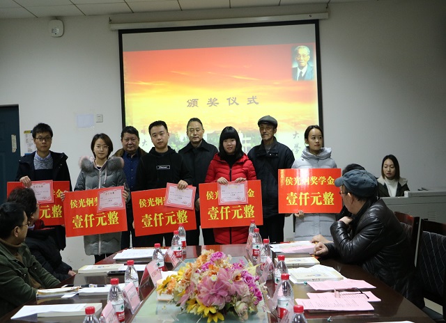 首先,由谢德体教授宣读第十六届“侯光炯奖学金”颁奖决定,宣布刘卫平、夏文银、吴越3人获得一等奖;胡艳、宾羽等5人获得二等奖;赵光夫、陈杨等13人获得三等奖。由李书记、谢德体教授、侯孝祖老师为他们颁奖。