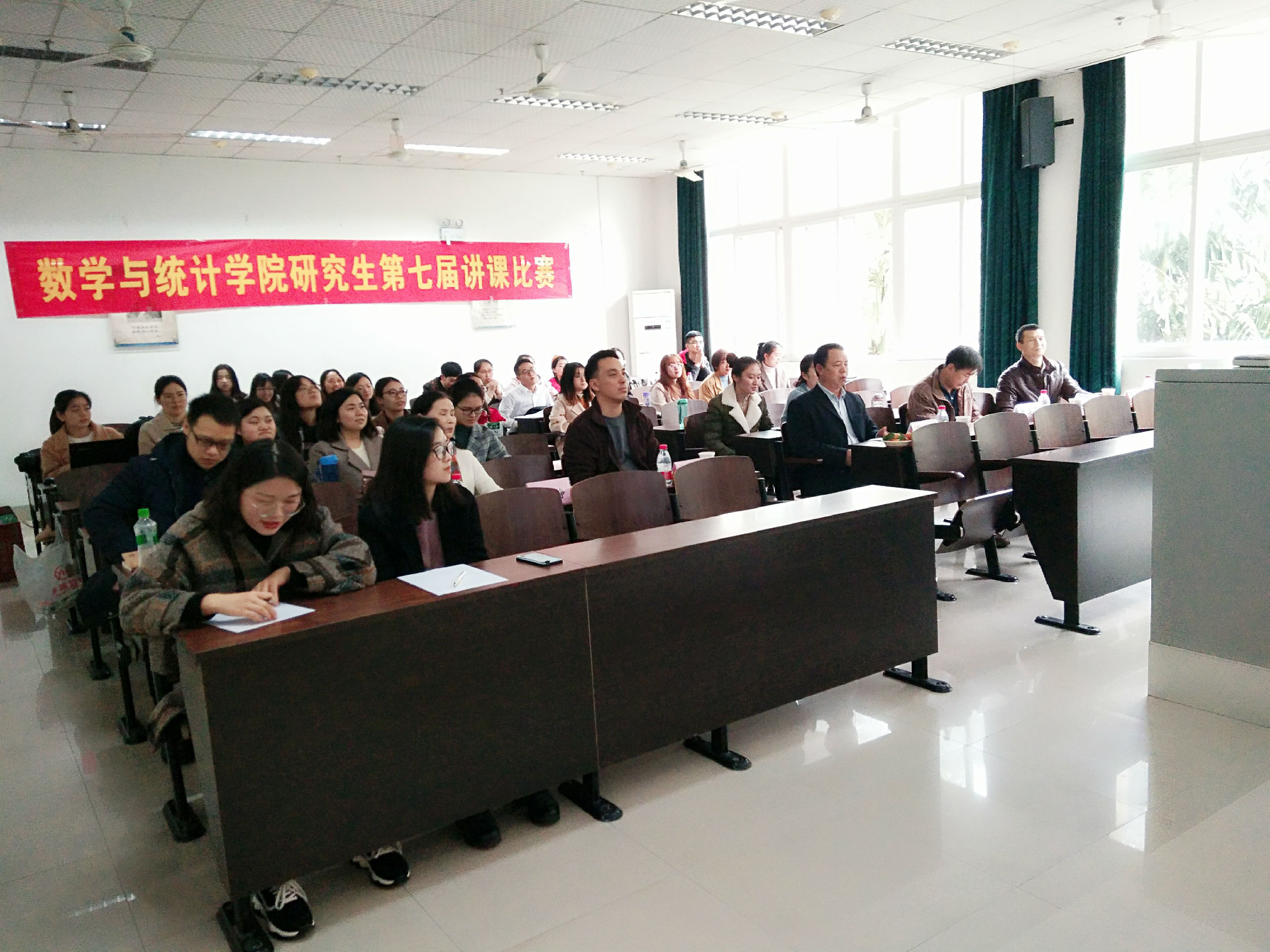 为提高师范技能,进一步规范课堂教学,提升教育能力,提供一个相互学习、相互交流、共同提高的平台。数统院研究生会学习部于12月2号在26教举办研究生第七届讲课比赛决赛。本次活动很荣幸的请到了易遵尧书记,罗利江副书记、王建军副院长、肖红老师、刘静老师、祝陶然老师担任此次决赛评委。通过前两周初赛与复赛的激烈角逐,最终共有6名同学晋级决赛。