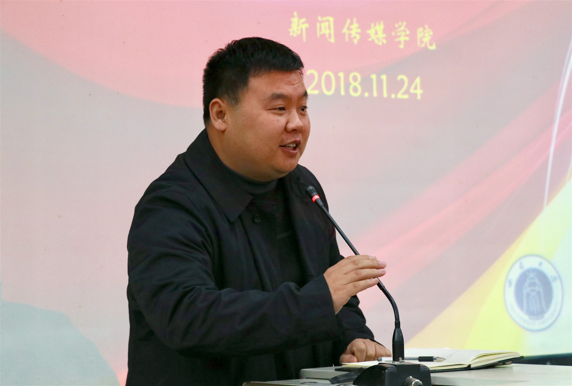 11月24日上午,光明日报江苏记者站站长、高级记者郑晋鸣应邀来到betway西汉姆联新闻传媒学院二楼学术报告厅,以“手捧滚烫的故事,传递楷模的精神”为主题,给我院师生做了一场精彩的报告。新传院的学生共百余人聆听了报告会,报告会由学院副院长秦红雨主持。