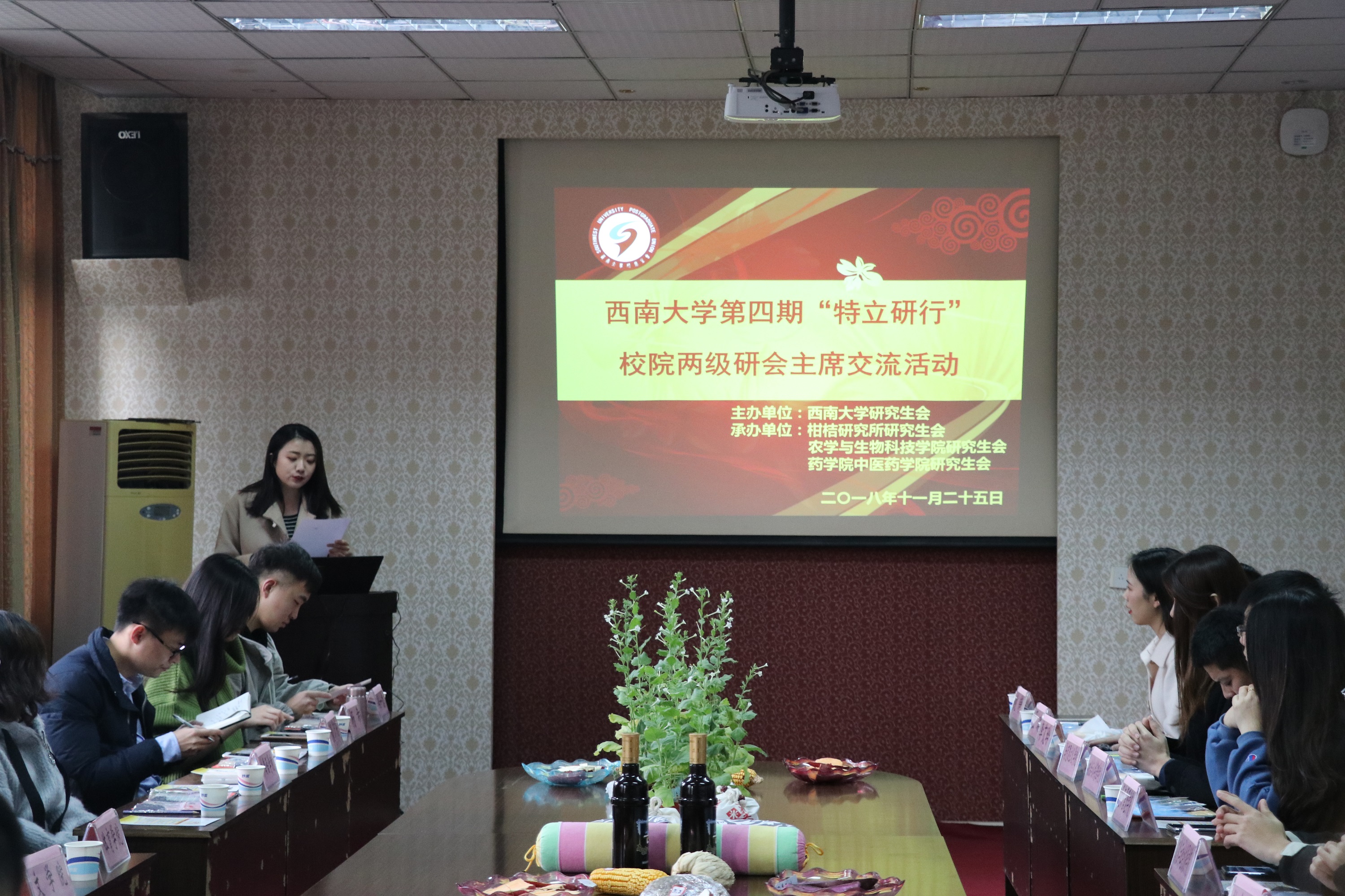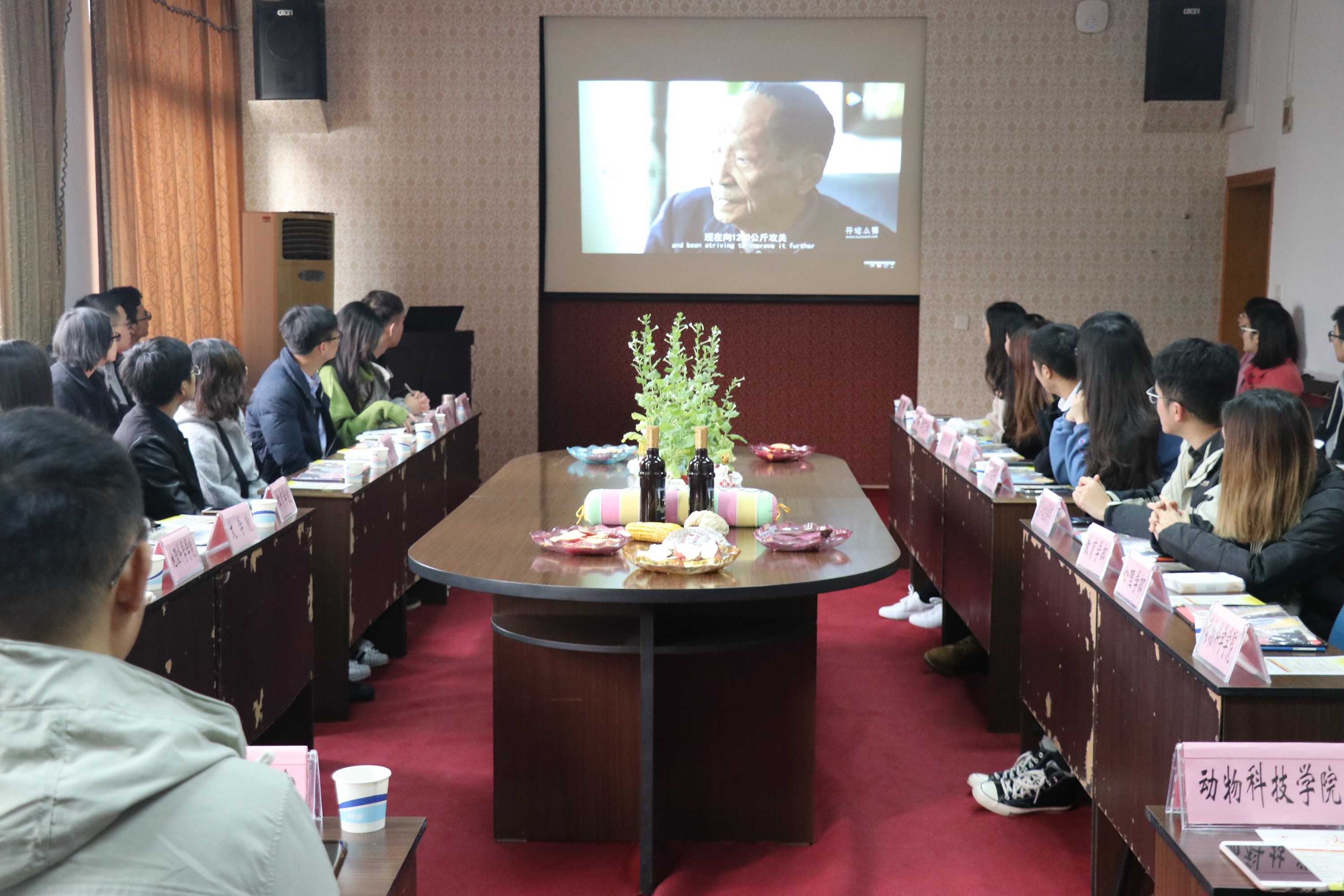 活动伊始,校研会组织部部长张子玥介绍了此次活动的背景及流程,接着农学与生物科技学院研究生会主席乔彩林介绍了来访嘉宾,同时表达了嘉宾们能够通过此次活动了解农生院学术及生活特色的愿望。随后,主持人马晋齐分别展示了学院风采和研会架构的视频,介绍了学院各课题组的大致研究方向,播放了种子画制作教学视频,嘉宾们对农生院学术研究的意义有了更多认识。