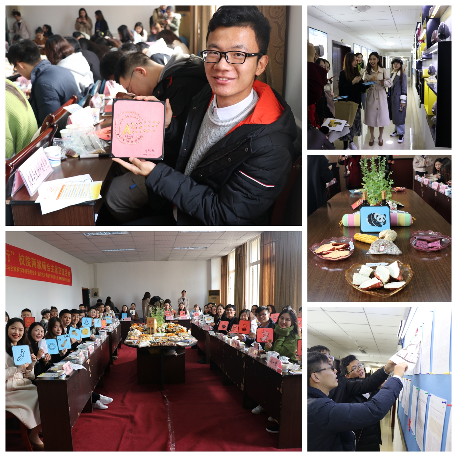 接下来的趣味种子画制作,让欢乐的活动气氛走向高潮。乳胶、棉签、纸板、镊子、各色种子一应俱全,纸板上提前绘制的卡通图案可爱生动,还有以种子拼成的校徽院徽更具特色,在座的嘉宾仿佛都回到了天真无忧的孩提时代,认真和喜悦溢满了暖暖的笑脸。其实,无论是获取知识还是探索真理,都离不开动手实践,毕竟“纸上得来终觉浅,绝知此事要躬行”。