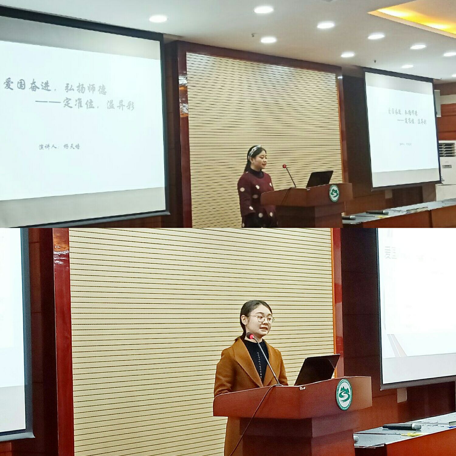 比赛中,来自各专业的16名参赛选手依次登台,每位演讲者的时间为5分钟。参赛选手根据自己作为一名研究生的实际情况,从不同的角度和方式表达出对弘扬爱国奋斗精神理解和感悟,或激昂高亢,或低沉吟诵,每位选手都展现出自己各具特色的人格魅力和高超的口语表达能力。杨天培将爱国奋斗与生物学知识联系起来,题材新颖,表现良好。彭雪婷的《爱国是一种行动》将自己的专业与钟扬常年奔赴野外盘点青藏高原植物种质资源所表现出的不怕苦、不怕累的精神相结合,真情实感的流露感动了在场的评委及观众,获得全场最高分。