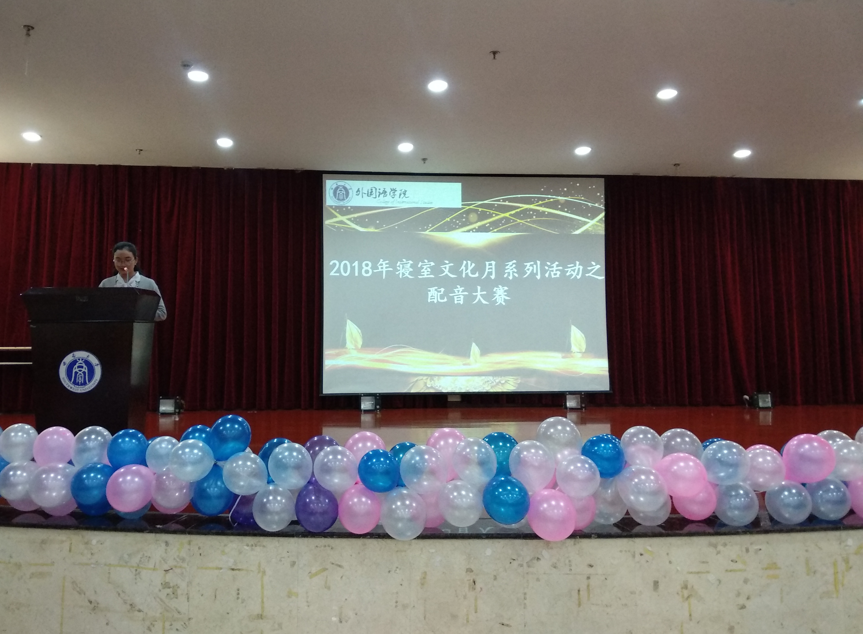 11月9日晚,外国语学院2018年研究生寝室文化月系列活动之配音大赛决赛暨颁奖典礼于外国语学院101报告厅举行。担任本次比赛的评委有第13届外国语学院团总支、研究生会主席汪鑫阳,副主席钟亚雯,重庆高校第11届英语研究生教学技能大赛二等奖得主赵青。