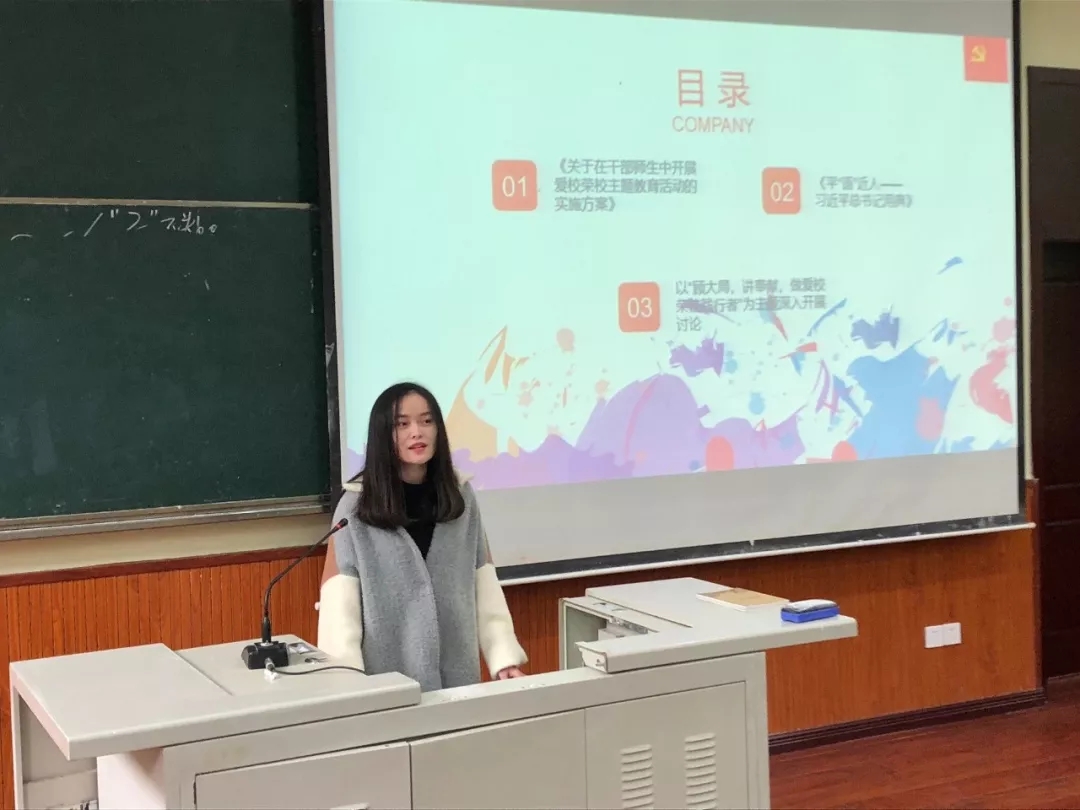 对《关于在干部师生中开展爱校荣校主题教育活动的实施方案》文件的学习,一共分为四部分。首先,黄琦思同志从开展“爱校荣校兴校”大讨论、“明校史·知校情”大学习、“传承西大精神”大宣讲三个方面,对“爱校·学习教育行动”进行了生动的讲解。她亲自参观了校史馆,并对校史馆的资源、环境等进行了内容梳理与图片呈现。其次,入党积极分子宫亚静同学对betway西汉姆联的历史功勋人物、典型优秀学生以及优美的校园进行了介绍,阐释了“荣选:选树宣传行动”的三个主要内容:建功立业西大人、学行天下西大人、爱校荣校西大美。接下来,陈昊同志带领大家学习了 “兴校·岗位建功行动”的内容,分别讲解了“兴校强校建言献策”、“兴校强校建功立业”、“兴校强校文明创建”这些活动应如何开展。最后是陈茜楠同志强调了开展爱校荣校主题教育活动,要高度重视、抓好落实、精心组织、取得实效、创新形式、扩大影响。