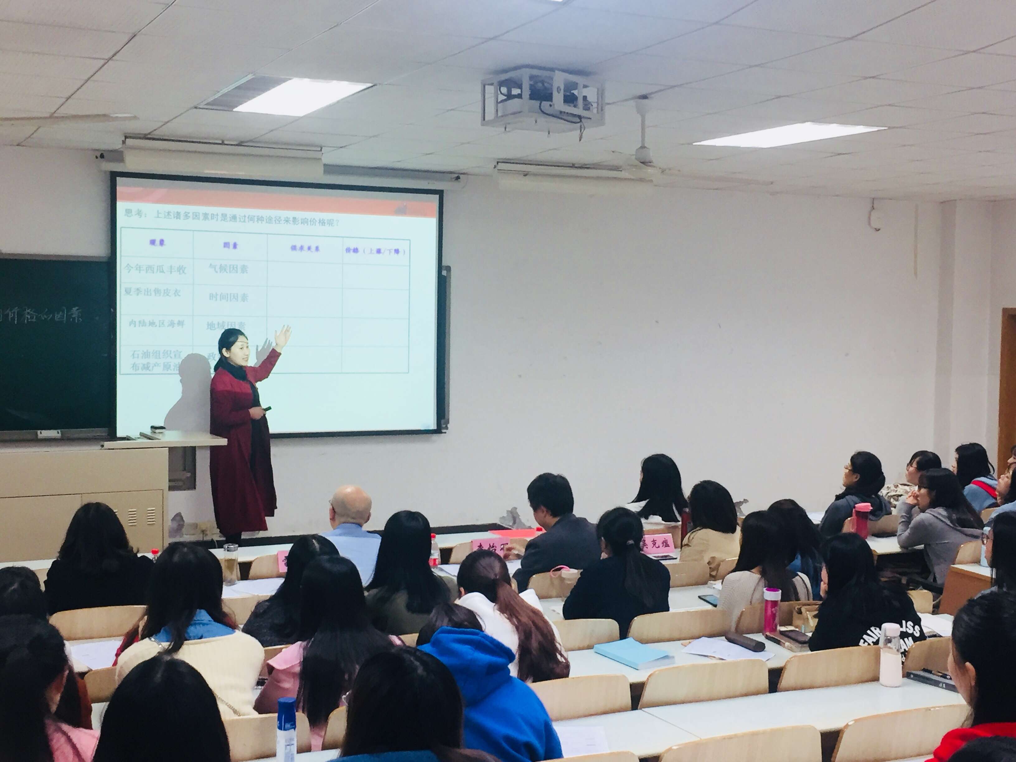 参赛选手精彩绝伦的讲课、出色流利的对答将比赛推向高潮,将理论联系实践的马克思主义“活的灵魂”贯彻于课堂教学全过程。“耳闻之不如目见之,目见之不如足践之。”一号罗畅选手以其严谨的逻辑思维,从实验感知切入,紧扣实践是认识的基础这一学习核心,层层推进;“找点空闲、找点时间,开着公车常出去转转。”二号冯波选手以其优美动听的歌声,从城管执法事例导入,逐一讲解了依法执政的意义;一例一图一结论,三号李晓佳选手以其独特的方式将传统的教学模式进行创新,开展小组讨论,让学生们联系生活理解价格变动的因素;“双十一你剁手了吗?”四号栾兴儒选手以自身消费观念的转变为例,紧扣主题,一以贯之,非常到位地讲解了从众消费心理与攀比消费心理的区别;把握课堂节奏,推进课堂教学,五号安静选手、六号李娜选手以国之精粹为例,让学生切身感受国粹的魅力,以中华文化独特的感染力分别讲授了文化创新的基本途径与文化的影响。