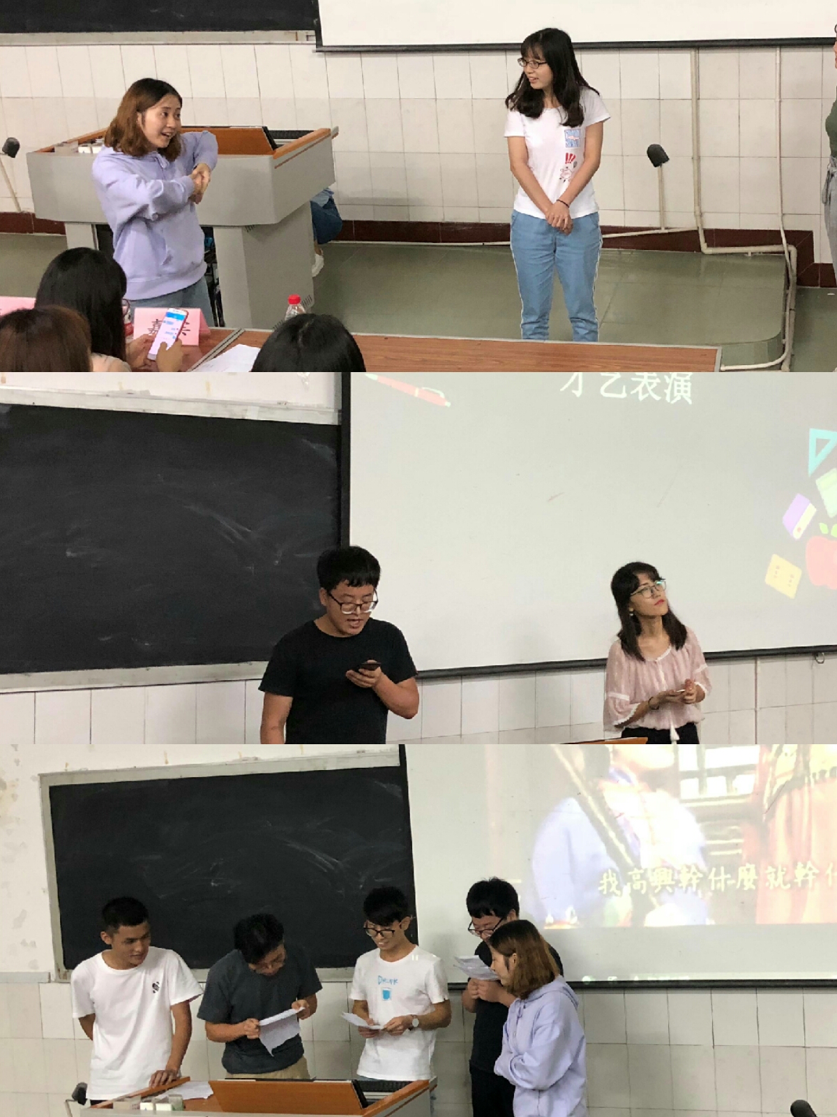 在三位同学分享经验、交流心得之余,2018级研究生新生也积极表现,活跃现场气氛。其中,分析化学专业的倪冉熹和有机化学专业的谢云鹏为现场嘉宾及观众演唱歌曲《纸短情长》;有机化学专业的四位男同学:谢云鹏、杨海林、莫佳俊、王治铝,用重庆话带来了一场精彩的配音秀;现场还有轻松的小游戏供同学们放松,使每个人都能参与到此次活动中来。交流会的最后,同学们对于自己感兴趣的方面向嘉宾们提出心中疑虑,得到了与会嘉宾的一一解答。