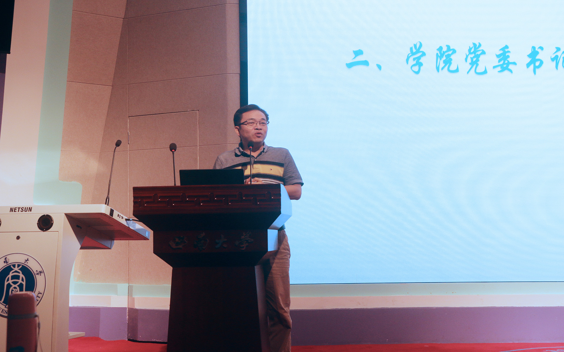 计算机与信息科学学院2018级研究生开学典礼于9月11日上午在25教学楼一楼报告厅隆重举行。学院党委书记靳拥军、院长肖国强、党委副书记刘作勋、副院长陈武、副院长韩毅出席典礼。到场的还有部分研究生导师及2018级全体研究生新生,典礼由学院党委副书记刘作勋书记主持。