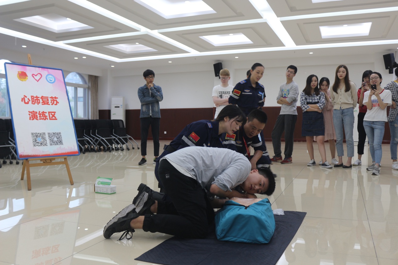 两江新区蓝天雪豹志愿者服务队来到学院,为研究生讲授应急救护知识,志愿者们强调了了应急救护知识的重要性,现场带领同学们实际操作,引导大家学习止血、心肺复苏术等,同学们积极参与到实际演练当中,用心记录和学习这堂“关于生命的课程”。