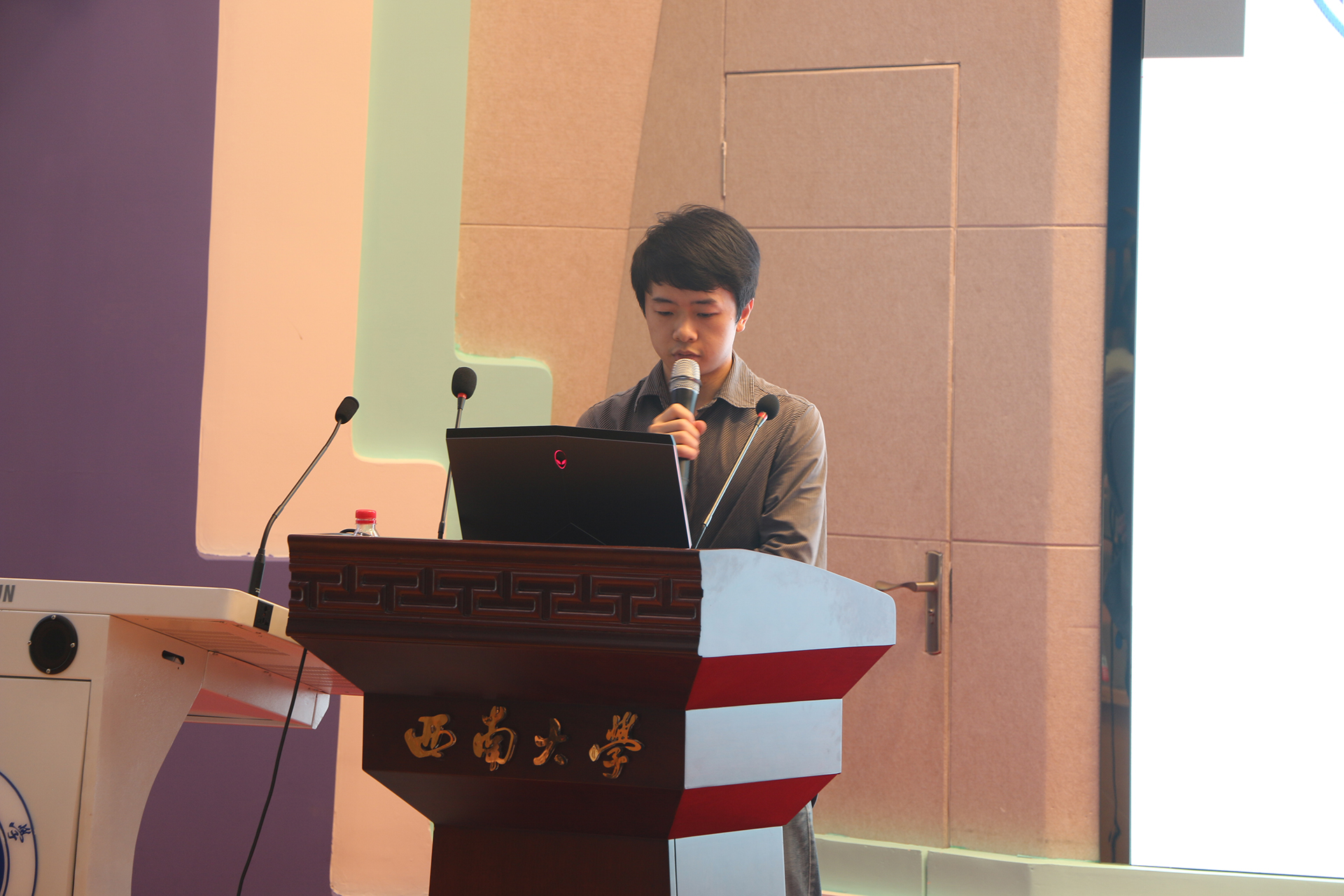 首先播放了开场宣传视频,向在场师生展示了学院研究生学术科技既往的部分成果。接下来学院党委李新副书记致辞,李书记在致辞中肯定了学院研究生过往所取得的丰硕成果,同时提出了三点希望:首先希望全体研究生充分利用这一平台广泛参与,积极交流,碰撞出创新的思维火花。其次,欢迎各位研究生积极参与的同时,更期望我们研究生导师能给予更多的关注与支持,带领与指导研究生展示风采。以其中的系列活动之一——优秀导学团队申报为例,希望各研究生导师带领学生团队积极申报,共同营造计信院活力、向上的导学文化。最后希望我们的学术科技嘉年华活动每年都有创新,每年都有突破,欢迎广大师生多提建议,多贡献办法,一起把学术科技嘉年华的这个平台办好,办出特色与水平。