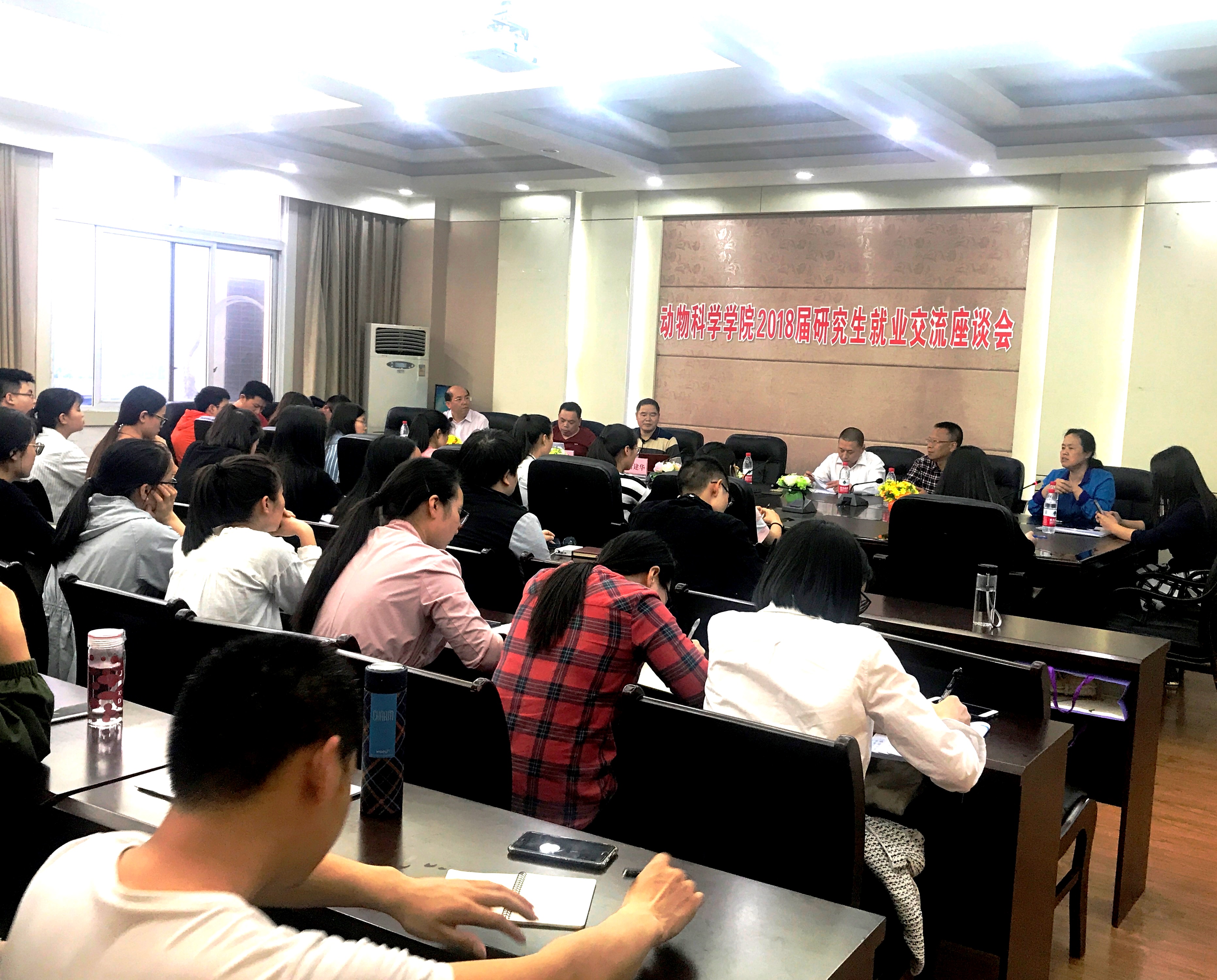 为提高我院应届毕业研究生求职能力,了解自身在面试过程中的缺点和不足,增强面试技巧,4月11日,学院特举办“2018届研究生就业交流座谈会”。活动专门邀请荣昌区职业教育中心副校长曹礼静、荣昌区畜牧局高级兽医师范才良、重庆方通动物药业有限公司总经理唐建华3位面试专家与研究生们现场交流,学院党委书记朱汉春、院长刘娟、研究生辅导员高旭及全体毕业研究生参与本次活动,活动由学院党委副书记黄庆洲主持。