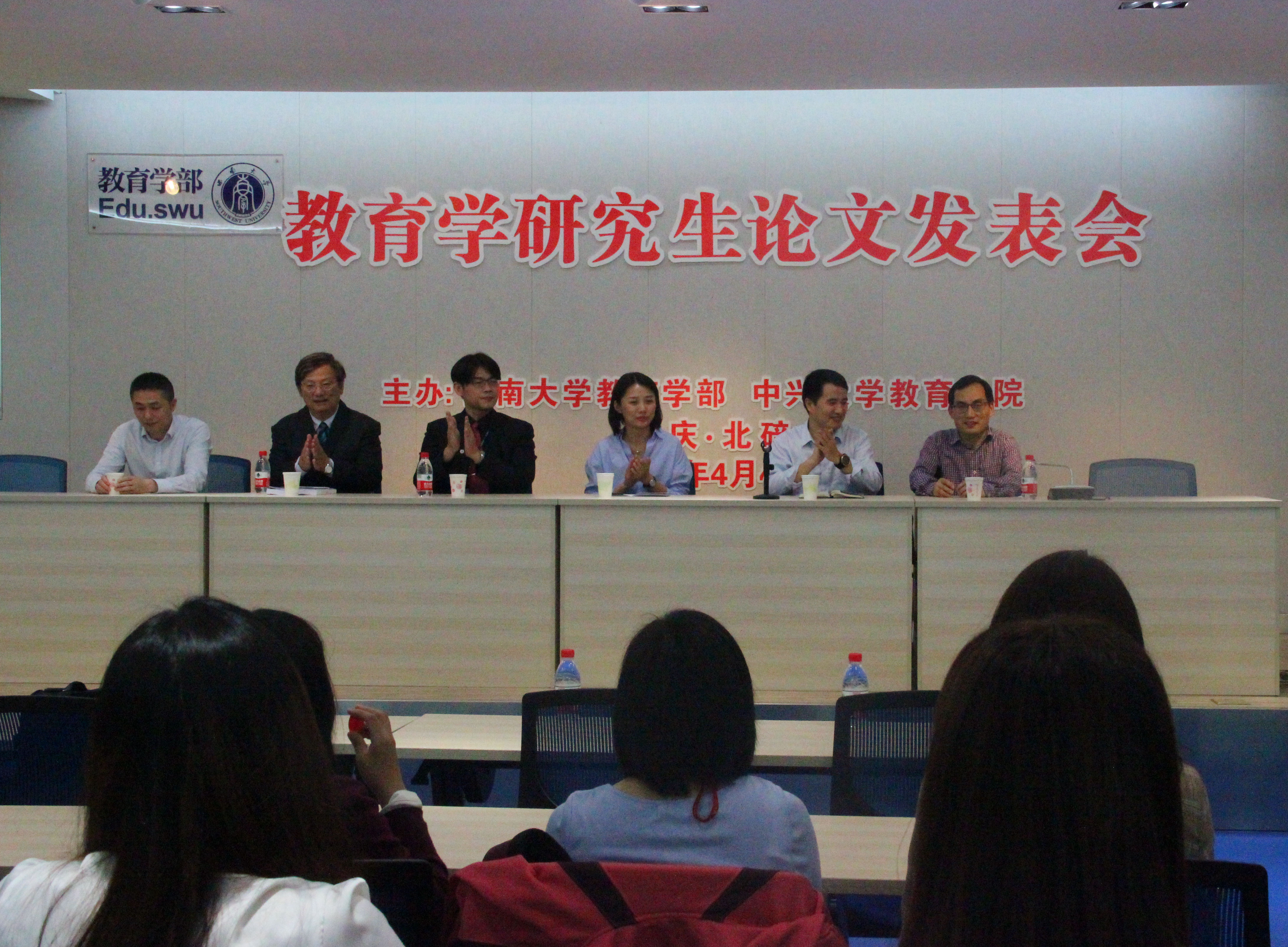 下午5点,师生齐聚811报告厅进行教授点评与会议总结。中兴大学蔡文龙副教授首先表达对这次两岸学术交流的感谢,并对教育学部研究生的学术研究能力予以肯定——论文都体现了深厚的统计分析素养和文献分析素养,并就研究思路和方法提供了可行性的建议和行之有效的措施。接着,教育学部副部长王牧华教授从研究者、学习者、管理者以及教师的四重身份出发,寄语双方师生:希望大家在学术研究中能够扩展视野,从国际化的视角出发,紧跟时代步伐,时刻学习,吸收新知!