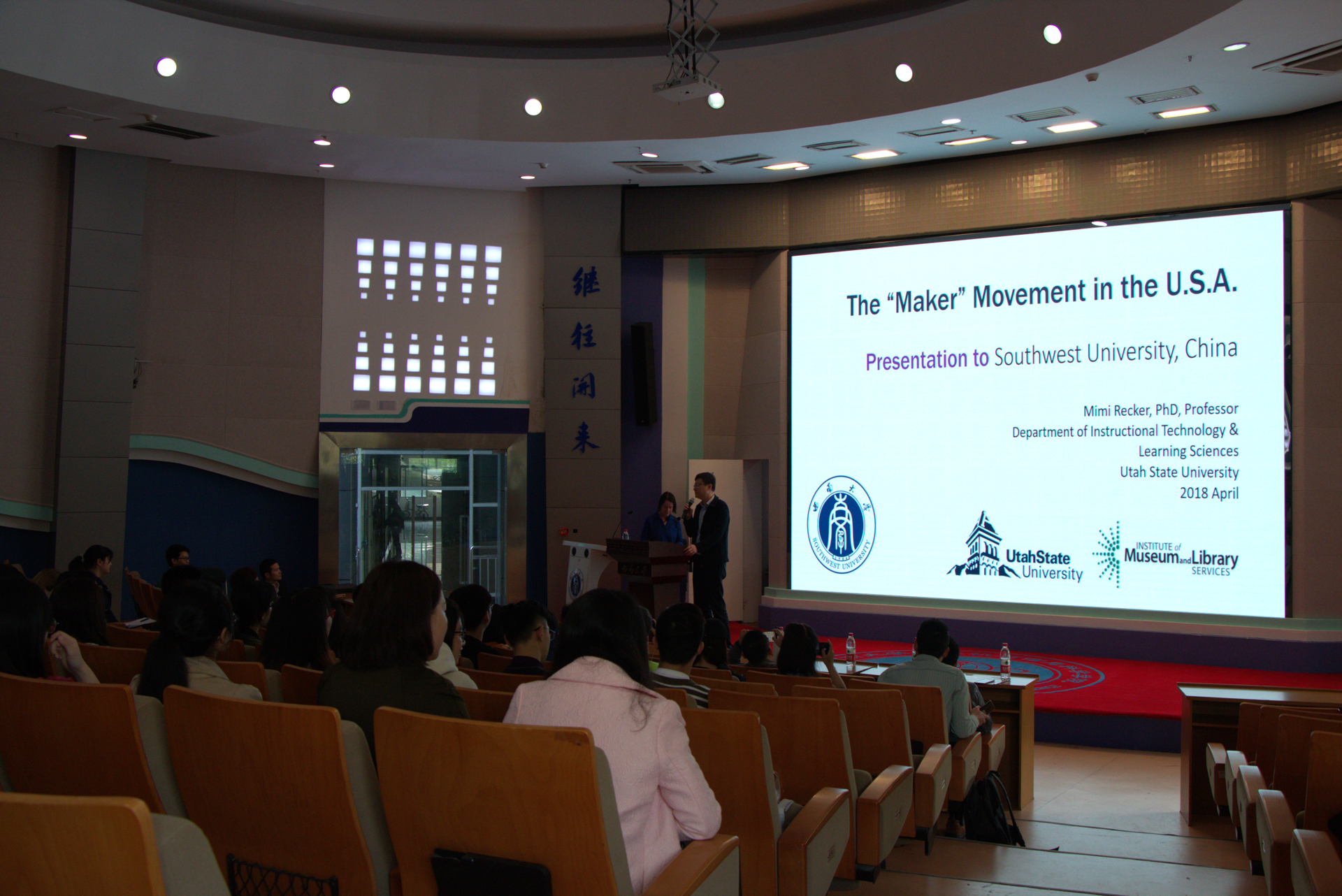 3月30日上午,美国犹他州立大学Mimi Recker教授应邀做客计算机与信息科学学院教育技术系,在25教0114报告厅做题为“美国的‘创客’运动(The ‘Maker’ Movement in the U.S.A.)”的专题报告。本次报告由betway西汉姆联信息中心主任、教育技术学专业学科带头人刘革平教授主持,教育技术学专业多位老师到场聆听,与百余名同学共享学术盛宴。