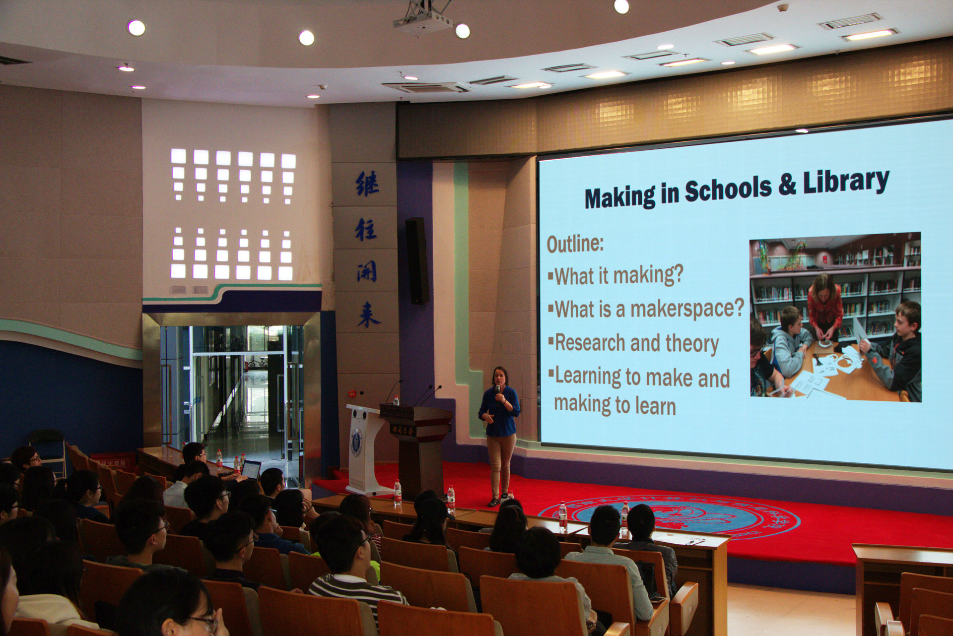 讲座伊始,Mimi教授基于“什么是创课运动”这一问题简要介绍了美国创客运动极其最新进展。美国创客运动从展览会、实验室、博物馆和社区空间延伸到了学校教室和图书馆,已逐渐成为一场席卷全美范围的重要运动。紧接着,Mimi教授阐释了创客运动的理论之源,并描述创客运动如何为学习提供新的机遇。在接下来的讲座中,Mimi教授分享了其团队帮助中小学和社区图书馆成功实施创客运动的实践案例,借创客运动的实践来深入阐述了创客运动如何以非传统的方式支持青少年学习计算机科学、工程、艺术和设计等领域知识。在互动提问环节,到场听众都热情高涨,就创客运动的实践问题同Mimi教授进行了热烈的讨论,现场学术氛围浓厚。