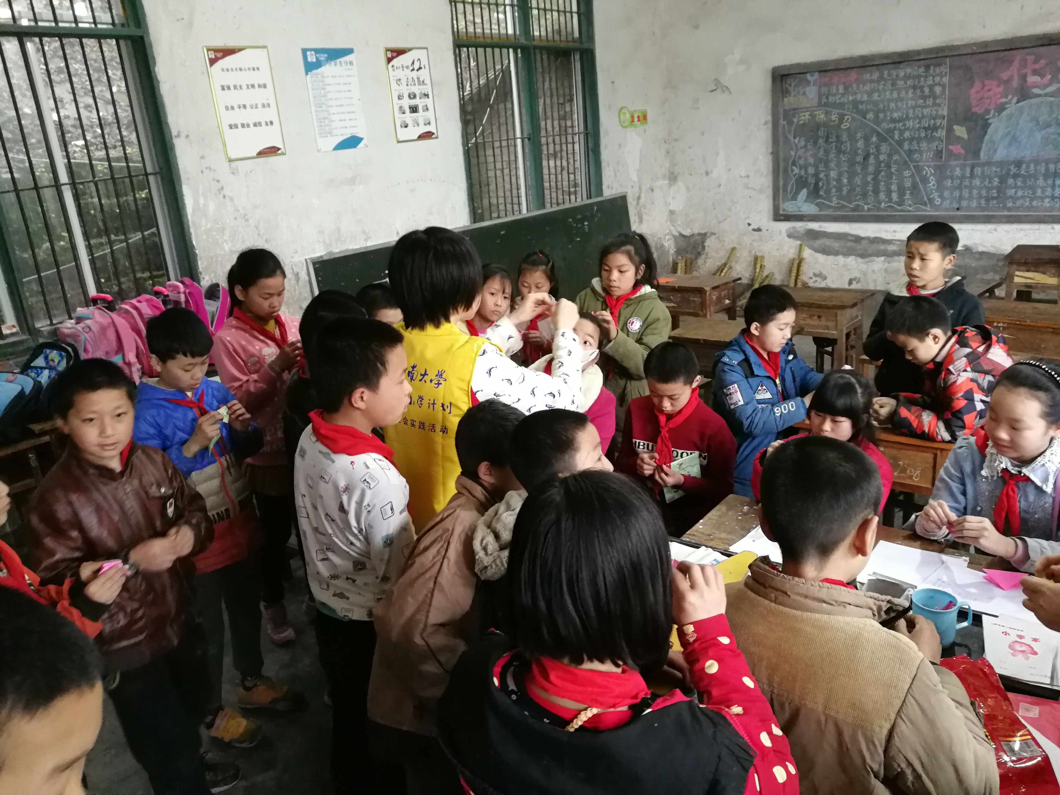 本次实践活动中,志愿者们分工明确:布置阅读角、编排黑板报、展开英语、绘画等课程教学,帮助同学们树立正确的人生观、世界观、价值观,指导他们健康生活,快乐成长。孩子们热情洋溢,与志愿服务队成员亲密互动,认真听取每一堂课。