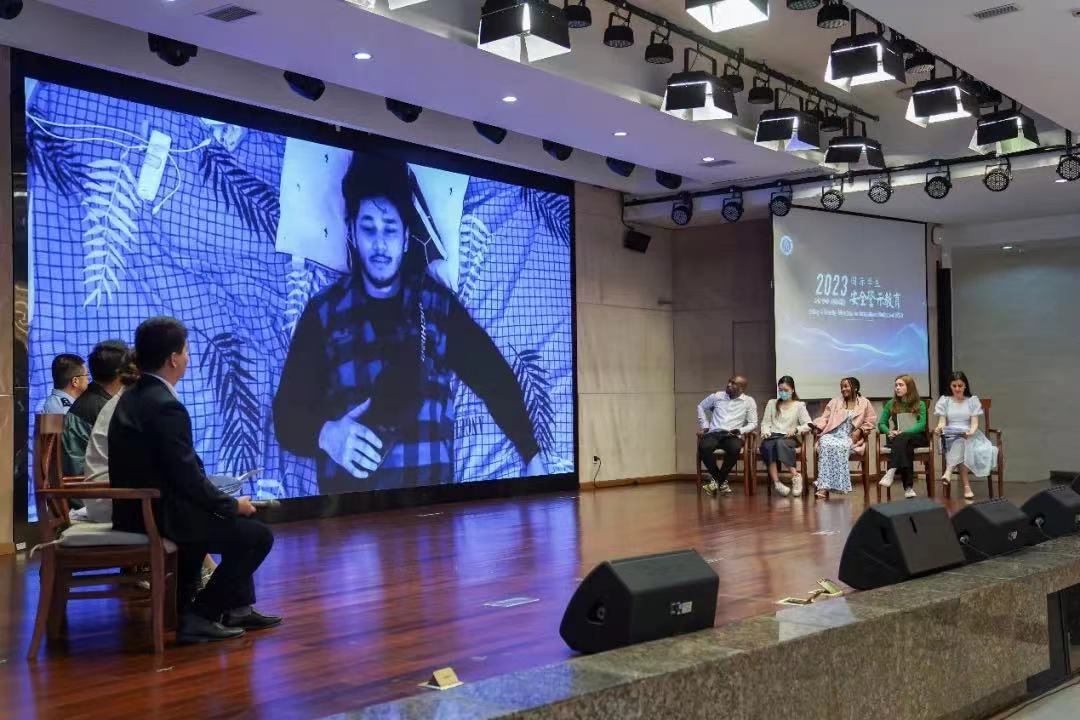 本次安全教育活动以“让身边人讲身边事”为线索,以国际学院国际学生自编自演自导的微电影为本次活动素材,邀请了重庆市出入境管理局境外人员管理支队徐振方警官、校医院医务部副主任主治医师查静思、校保卫处治安科科长黄汀州、国际学生心灵驿站指导教室洪雨婷老师作为“专家团”成员莅临现场,同时邀请了由来自俄罗斯、尼日利亚、泰国和坦桑尼亚的4名国际学生组成的“学员班”现身说法,吐露国际学生共同心声。